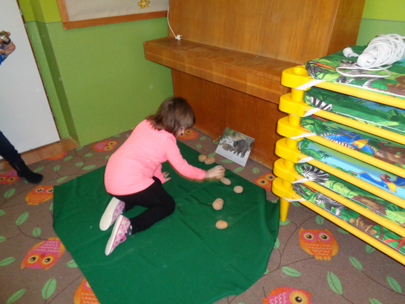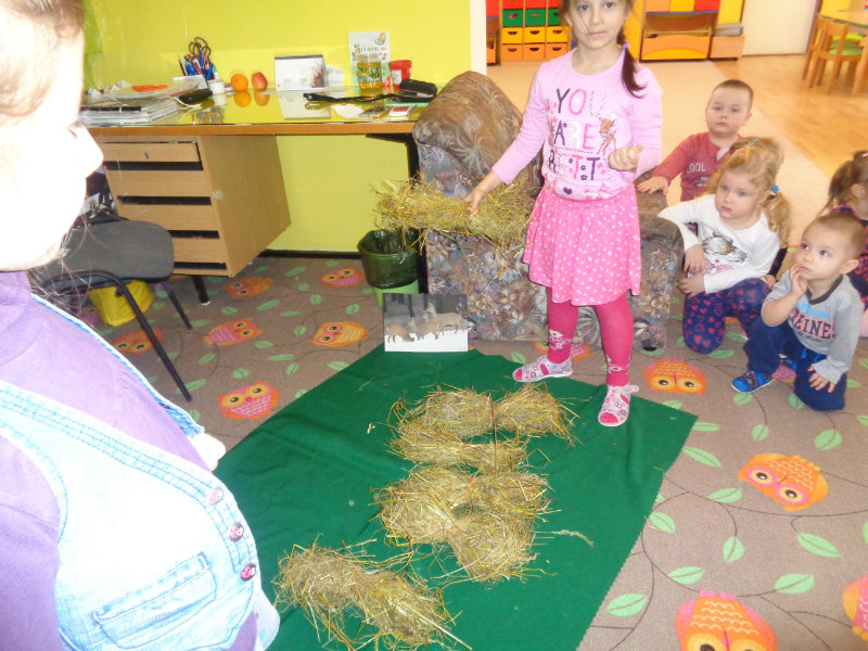 Rozprávali sme sa o tom, ako žijú zvieratká v zime. Vtedy vytiahol z batohu ujo Jožko veľmi zvláštne veci - seno, mrkvu, zrno a zemiaky. Postupne sme sa dozvedeli, ktoré lesné zvieratká by sme tým mohli v lese pohostiť. Dozvedeli sme sa i veľa zaujímavostí zo života zvierat v zimnom lese a zahrali sme sa rôzne hry - ako sa kŕmia zvieratká, líšky naháňali zajačikov, poznávali sme zvuky lesa...