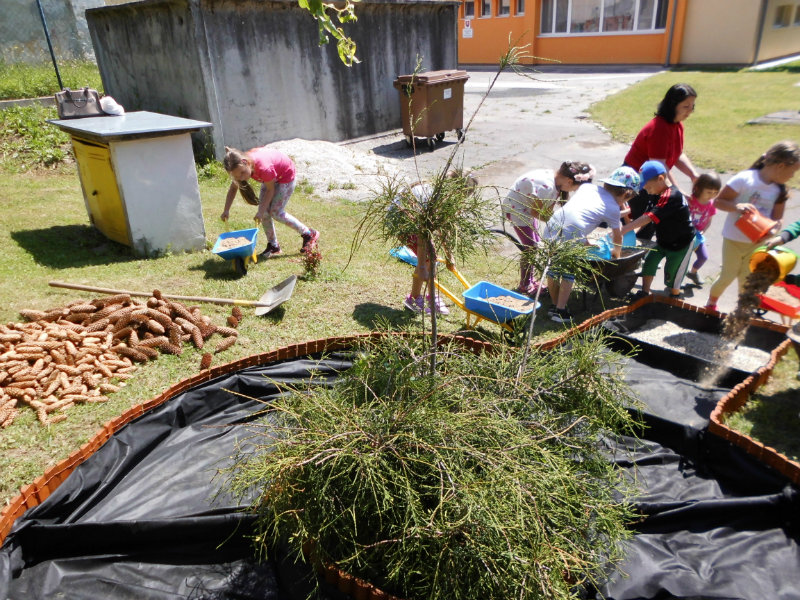 V rámci aktivity Zelenej školy sme pomáhali ujovi školníkovi pri budovaní pocitového chodníka v areáli našej MŠ. Už teraz sa všetci tešíme, ako ho v priaznivom počasí vyskúšame.