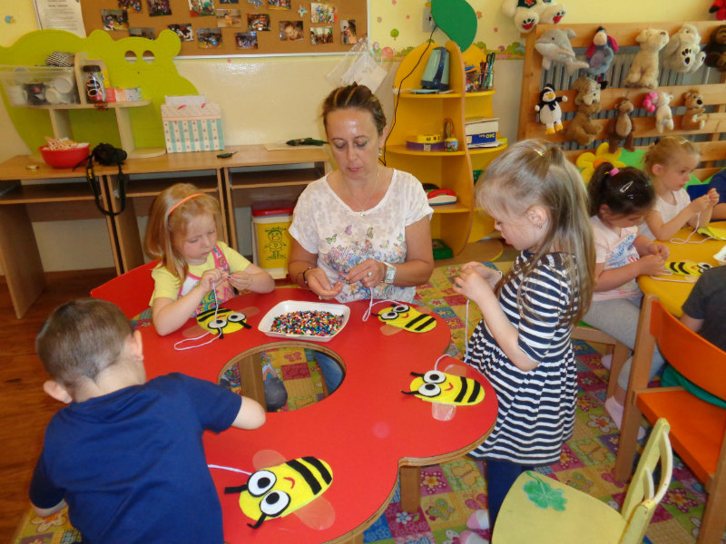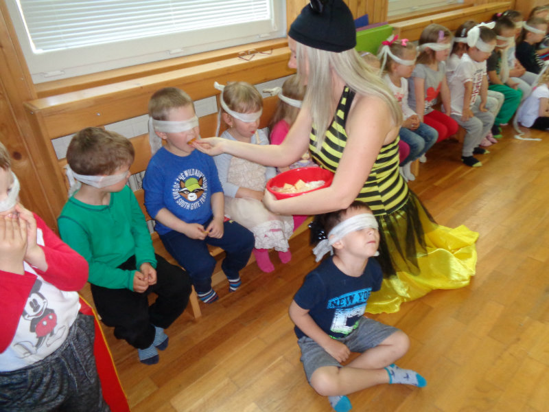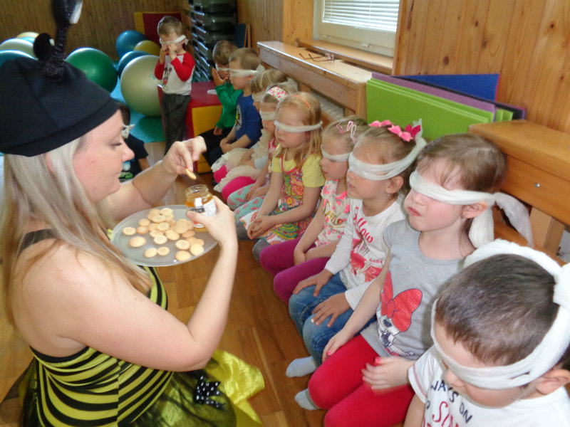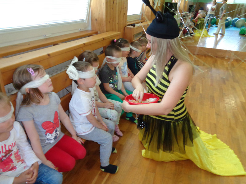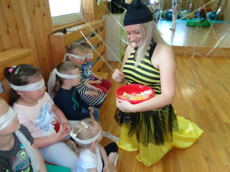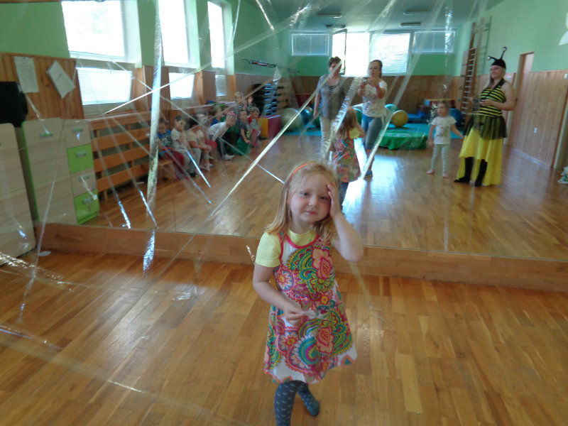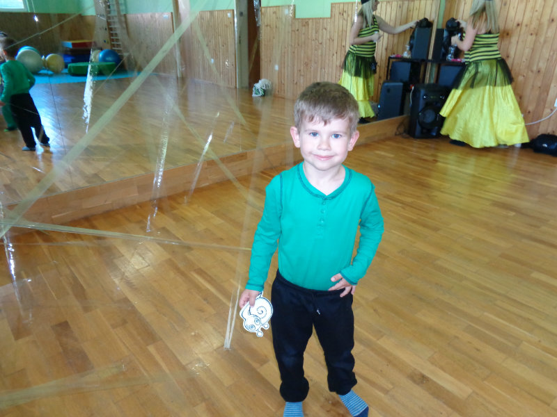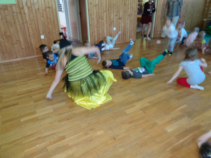 Dňa 19.5. 2017 nás pozvala pani učiteľka Kristínka Kotrasová na návštevu do CVČ. Pripravila si pre deti bohatý a zaujímavý program so športovým i poznávacím zameraním. Deti cvičili s fit-loptami, so stuhami, súťažili, hrali sa píšťalkový tanec. Privítala nás krásna včielka a nakoľko sme sa učili o hmyze, všetky aktivity boli zamerané na danú tému. Deti robili slimáka, stonožku, vyťahovali z pripravenej pavučiny obrázky, lovili hmyz a pritom hádali hádanky. Ochutnávali so zaviazanými očami pripravené maškrty - ovocie a piškóty s medom od včielky. Pani učiteľka si pripravila pre deti na záver krásny darček - vrecúško v tvare včielky, na ktoré deti navliekali korálky. Za odmenu im pani učiteľka Kristínka prilepila na ruku tetovačku v tvare srdiečka.Deťom sa aktivity i darčeky veľmi páčili, odchádzali plní dojmov a zážitkov. Veľmi pekne ďakujeme pani učiteľke Kotrasovej z Centra voľného času za podnetný program a darčeky.