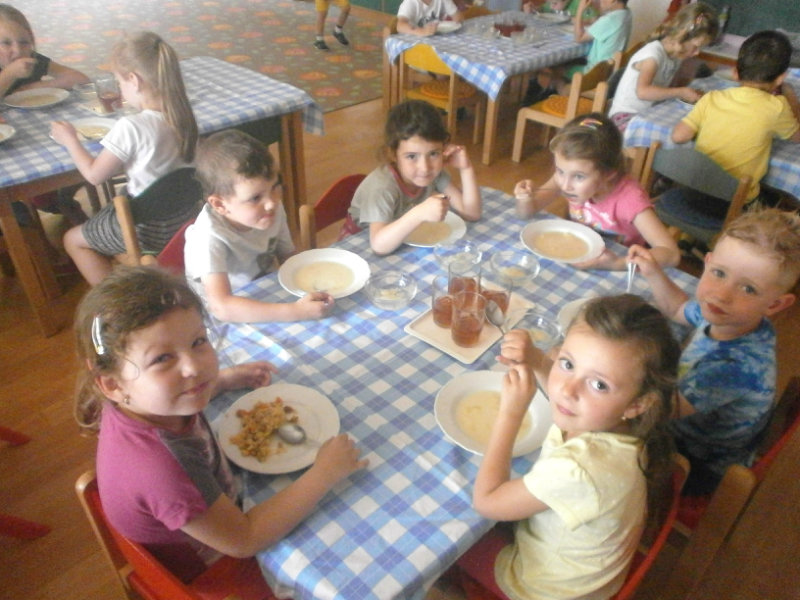 Nezabudli sme sa ani posilniť keksíkmi, ovocím a vodičkou, aby sme zvládli cestu späť do MŠ, kde nás už čakal chutný obed.