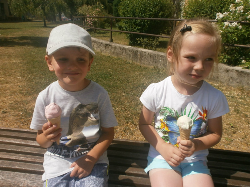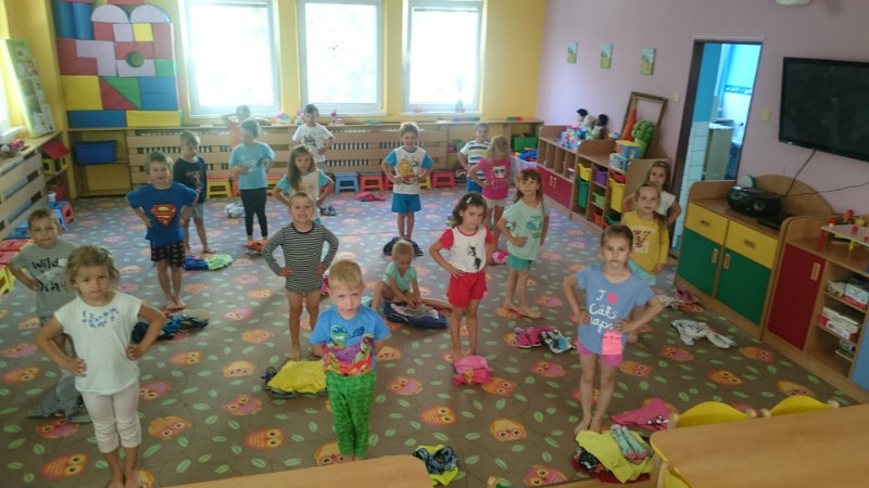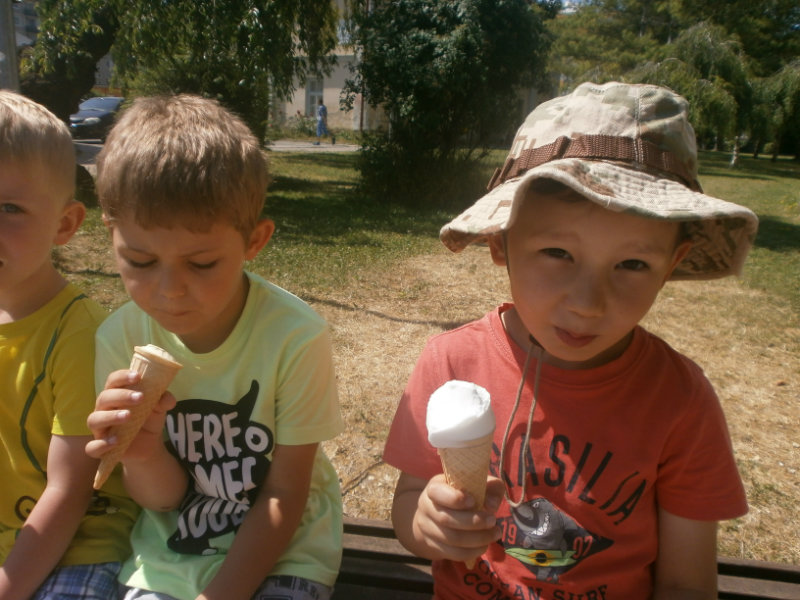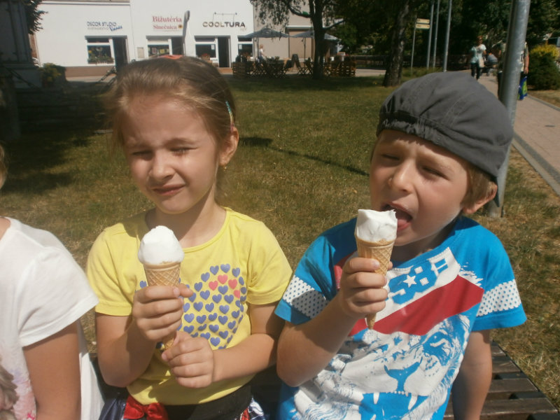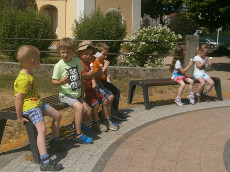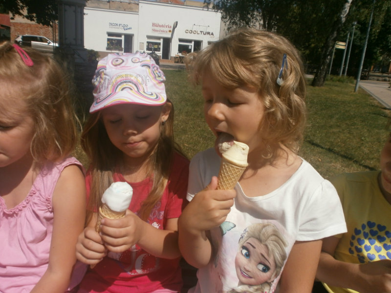Jedným z našich zážitkových dní bol v našej triede 15. júl 2017. Deti si rozvíjali sebaobslužné činnosti pri obsluhovaní sa s jedlom. Technicky si precvičili skladanie a ukladanie oblečenia s dodržiavaním presnosti, orientáciu v skrinke vo vlastných veciach. Zahrali si divadielko O Šípovej Ruženke a Kráske a zvierati, na ktoré si vlastnoručne vytvorili papierové bábky. Za odmenu sme navštívili cukráreň Ritmo , kde si deti pochutnali na výbornej zmrzline, na ktorú nám sponzorsky prispel p. A. Straka, za čo mu srdečne ďakujeme. Podporili sme u detí sociálne kontakty, schopnosti spoločenského správania sa v meste, komunikáciu, precvičenie si zdvorilostných fráz Dve čarovné slovká viem, pri sebe ich nosím, to prvé je ďakujem a to druhé prosím.