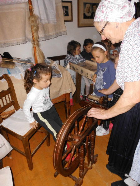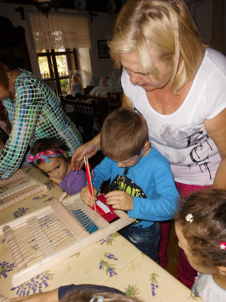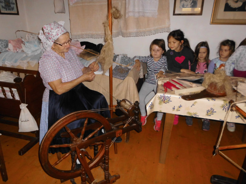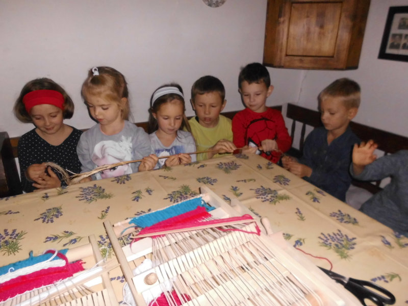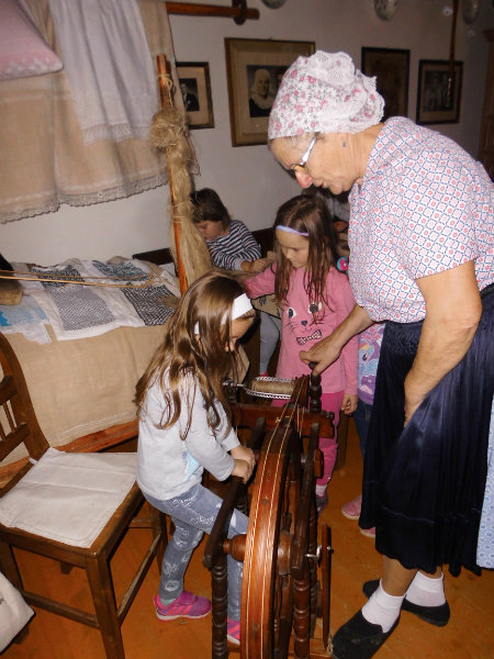 Mnohé deti využili možnosť vyskúšať si ako sa pracuje na trepačke, s motovidlom, na kolovrátku, na hachle, ale aj na miniatúrnych krosnách.