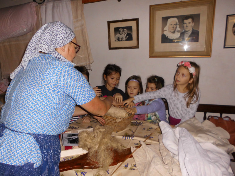Priadky boli tiež spoločenskou udalosťou, kedy sa spievalo, tancovalo a rozprávali sa rôzne príbehy. Jeden, trošku strašidelný si vypočuli i naše deti. Naučili sa však i pesničky "Močela konope, močela" a "Slúžela sem u Kadleca" a tanček.