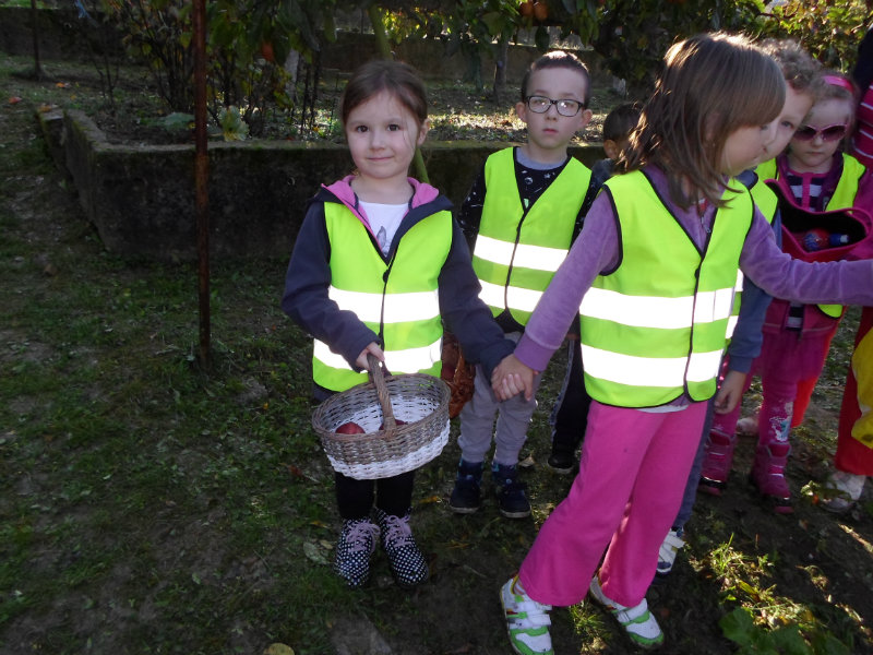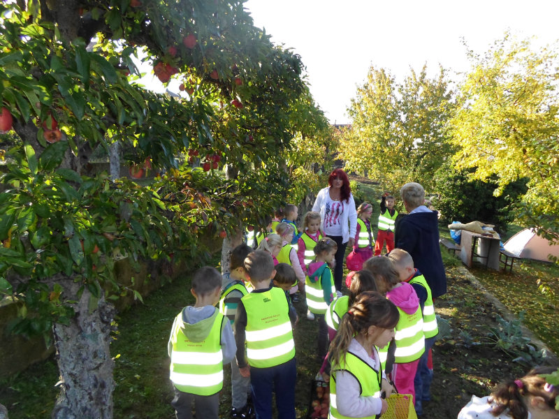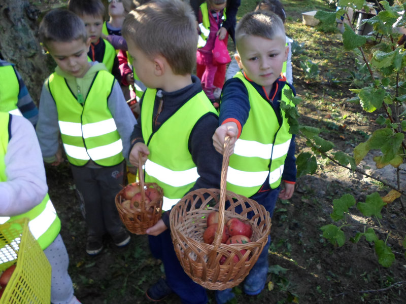 Oberačka jabĺk v sade u babičky. Deti sa zoznámili s jesennými prácami, zberom úrody a jej uskladnením. S košíkmi rukách sme sa vybrali do záhradkárskej oblasti nad Starou Turou, k babičke našej Sari Nor, k pani Vičíkovej. Pozvala nás, aby sme jej pomohli obrať v sade jabĺčka. Po príchode sme sa pustili do práce. Po dvojiciach sme zbierali úrodu a opatrne sypali jabĺčka do pripravenej debničky. Keď sme boli s prácou hotoví, pozvali nás domáci ku stolu na ,,oldomáš". Pohostili nás nakrájanými jabĺčkami, hroznom, čokoládkami. Po občerstvení, sme si spravili veselicu, na ktorej sme si zaspievali známe piesne: Bolo raz jabĺčko krásne, Červené jabĺčko vo vrecku mám, Jeseň pani bohatá, Jeseň už prilieta po chotári, zarecitovali básne Spadla hruška zelená, Ja som slivka slivôčka...Zo susednej záhrady nás pán záhradkár pozval na výstavu kaktusov. Obdivovali sme rôzne tvary, veľkosti, pichliače, kvety. V ďalšej záhrade nám ujo ukázal, ako sa rýľuje, a pripravuje pôda na zimu. Rozlúčili sme sa, poďakovali a s príjemnými zážitkami sme sa vrátili do MŠ.