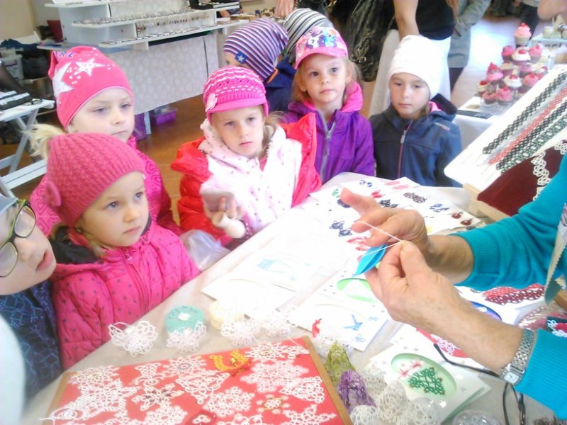 Staroturiansky remeselnícky jarmok: Deti pozorovali v jednotlivých stánkoch rôzny sortiment a zároveň šikovnosť našich remeselníkov. Rezbár nám predviedol výrobky z dreva - vidly, hrable, riad, príbor, misky, džbány, ukázal nám, ako vyrába varešku ostrým, zahnutým nožíkom. U medovnikárky sme sa dozvedeli recept na mäkký a sladký medovník . Obdivovali sme rôzne tvary -srdiečka, koníky, bábiky, domčeky. Medovníky boli krásne zdobené a nádherne voňali. Už sa nečudujeme, že ježibaba zlákala vôňou do lesa Janíčka a Marienku. V ďalšom stánku deti obdivovali handrové hračky. Povedali sme si, že kedysi boli len hračky, ktoré dokázali vyrobiť rodičia. Mamičky deťom hračky šili. Vedľa bol stánok s drevenými hračkami. Tu sme si poobzerali hračky, ktoré vyrábali oteckovia a deduškovia - koníky vláčiky, postieľky pre bábiky. Viseli tu i maňušky, s ktorými sa hrá divadlo. Neďaleko sa deti dozvedeli o význame včielok, včelár nám vysvetlil, ako včielky nosia do úľa peľ na nožičkách v podobe guliek. Ako vyrábajú med a dal nám ho chutnať na oplátku. Teta nám ukázala výrobky z plastu - sviečky najrozličnejších tvarov. Pekárka nás ponúkla chutnými koláčikmi a pagáčmi. Korenárka mala plný pult vreciek s rôznym voňavým korením, ktoré sa pridáva do jedla, aby bolo chutné, voňavé a zdravé. V remeselníckej dielni sa deti zahrali na hrnčiarov a modelovali z hmoty zvieratká. Potom obdivovali šikovné ruky košikára, a jeho výrobky. Tu sme zistili z čoho a ako vzniká košík a koľko času ho trvá upliesť. Obdivovali sme umenie čipkárky. S údivom sme pozerali na veľký tkací stav, na ktorom sa tkajú koberce. Na záver si deti prezreli starodávne zariadenú izbu, v ktorej nás privítala teta v kroji. Tu ochutnali domáci koláč - štedrák, ktorý sa piekol na Vianoce a bol z orechov, maku, lekváru a tvarohu. DO MŠ si deti odniesli množstvo nových poznatkov a zážitkov.