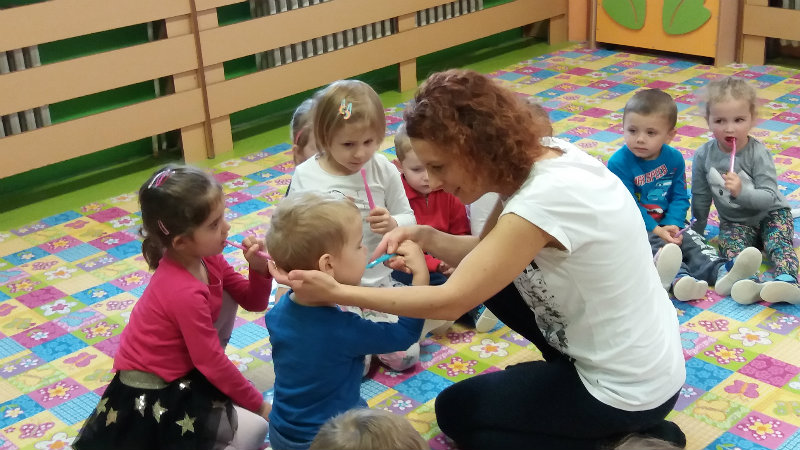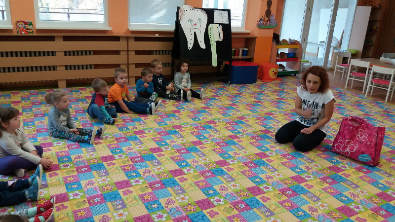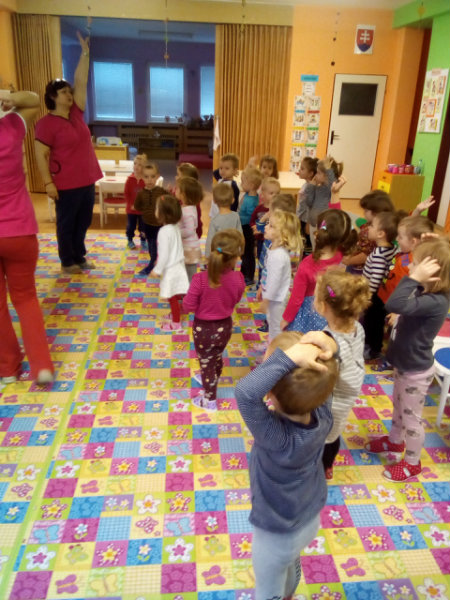 V novembri sa naši najmenší oboznámili so základom starostlivosti o zúbky prostredníctvom rôznych aktivít - beseda s dentálnou hygieničkou, divadlo o "Vlkovi, ktorý šušľal", ktoré deťom zahrali pani učiteľky, praktických ukážok, piesní,básní a hier. Zúčastnili sa na bábkovom divadle "O Guľkovi Bombuľkovi". Spoločne s deťmi z triedy č. 1 sme navštívili materské centrum "Žabka". Za túto spoluprácu ďakujeme mamičke našej Vladky, pani Ing. Marekovej, ktorá pripravila pre deti zaujímavé aktivity a občerstvenie. Deti sa na elementárnej úrovni oboznámili s jednotlivými časťami a funkciami ľudského tela a pripravujú sa na príchod Mikuláša.