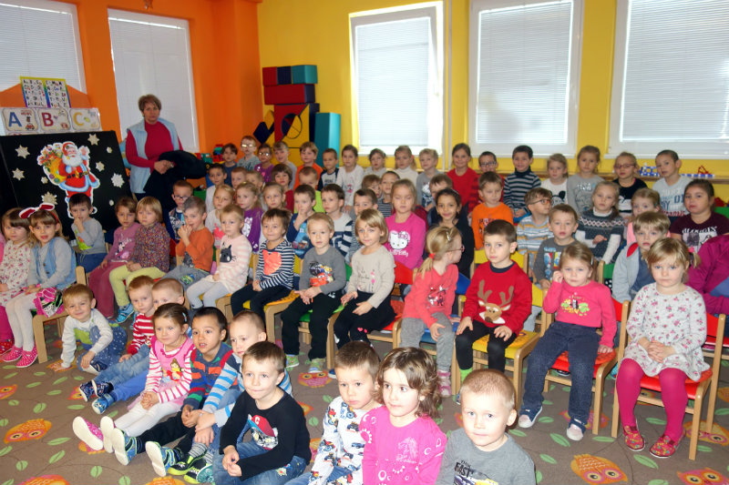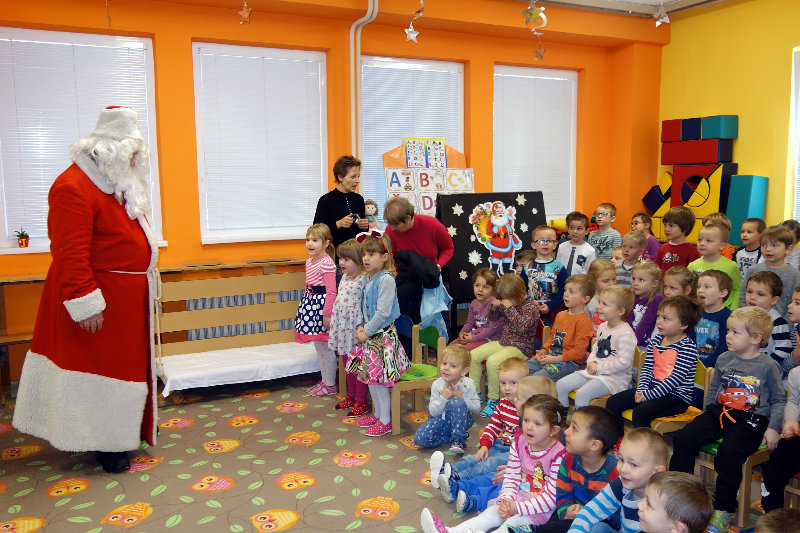Keď je vonku sneh a mráz, navštívi nás Mikuláš. Príde len raz v každom roku, čerta má po svojom boku. Našu škôlku navštívili, všetky deti obdarili. Ďakujeme, Mikuláš, tešíme sa o rok zas.