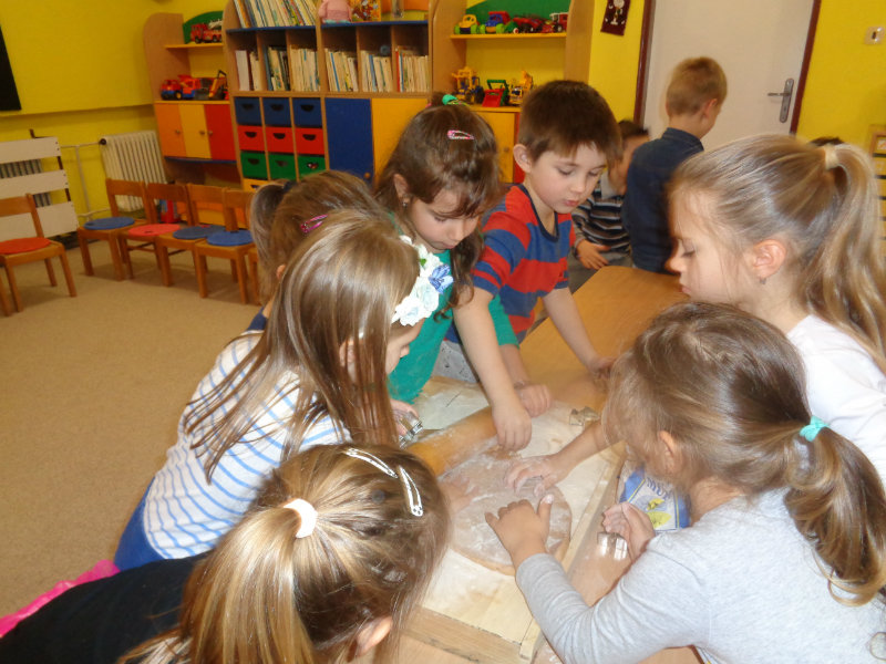 Aj v MŠ sa tešíme na Vianoce. Zdobili sme si stromček, aranžovali sme svietniky, košíky, piekli a zdobili sme medovníky, vyrábali vianočné pozdravy. Pri práci nás prišli povzbudiť aj deti z iných tried.