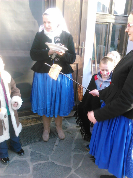 Na Gazdovskom sa tradície prežívajú tak, ako kedysi, preto sme boli zvedaví, čo nové sa dozvieme o fašiangovom období. Už nás čakali dievčence v krojoch, s gazdom i gazdinou a dva verné strážne psy. Z kuchyne sa šírila príjemná sladká vôňa šišiek. Keď sme sa usadili, v nám už známej komôrke pri krbe, v ktorom praskalo drevo, gazda nás privítal a vysvetlil nám, čo sú to Fašiangy. Fašiangy sú doba od Troch kráľov do Popolcovej stredy. Najznámejšie a zároveň najveselšie sú posledné dni fašiangu, spojené s radovánkami a hodovaním. Fašiangové tradície, spojené so sprievodmi maskovaných ľudí, boli akýmsi prechodom medzi Vianocami a Veľkonočnými sviatkami. Po ňom nasleduje čas štyridsaťdňového pôstu. Naši predkovia si na bujaré fašiangové zábavy veľmi potrpeli. Vtedy však býval fašiang dosť hlučnejší a odviazanejší než dnes. Každý sa snažil užiť si fašiangové zábavy ako najlepšie vedel.