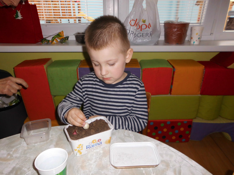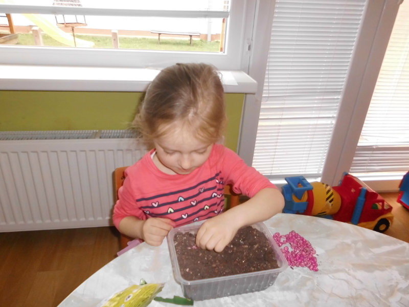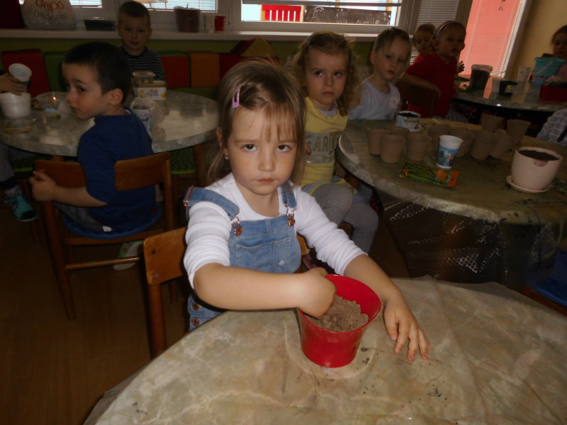 Prostredníctvom zážitkového učenia sme pôsobili na emocionálnu stránku detí pri sadení semienok a cibuliek prinesených z domova. Vyhrnuli sme si rukávy a stali sa na chvíľu malými záhradníkmi. Rastlinky denne sledujeme, polievame a tešíme sa ako nám rastú. Očistili sme si svoje políčko a zasadili samé zdravé dobroty : cibuľku, hrášok, pažítku a na potešenie sú pestrofarebné kvetinky. Už sa tešíme na úrodu.