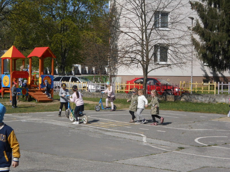 Počas týždňa 16.4. - 20.4.2018 sme si rozprávali o dopravných prostriedkoch, základných pravidlách na ceste i na chodníku. Navštívili sme dopravné ihrisko. Doma sme s oteckami a s mamičkami vyrobili dopravné prostriedky z rozličného odpadu. Ako sme sa s touto témou popasovali, môžete vidieť na fotkách.