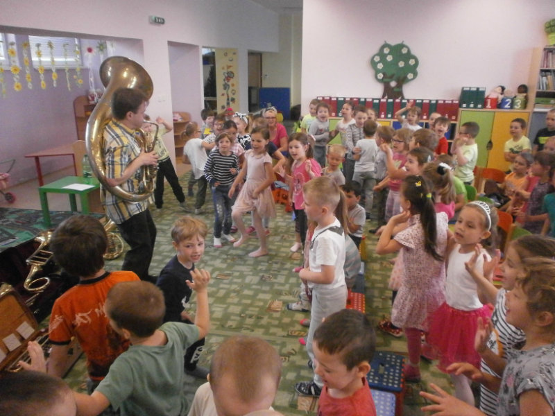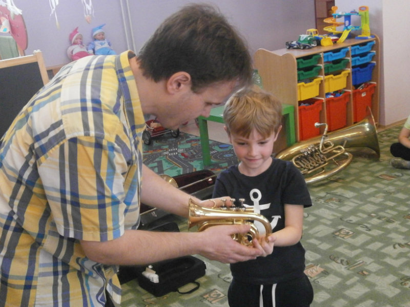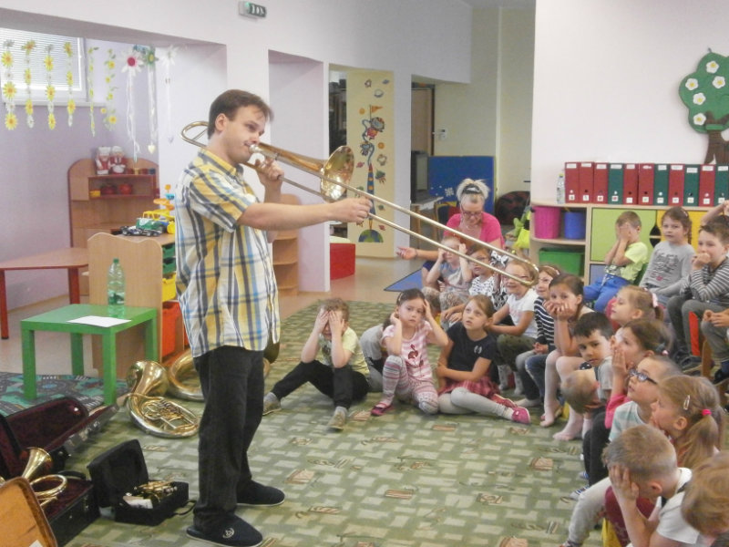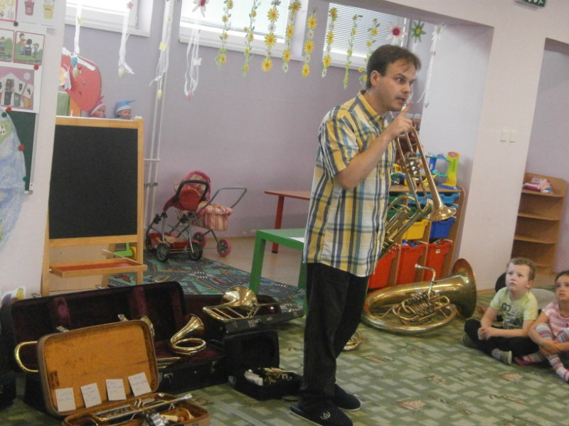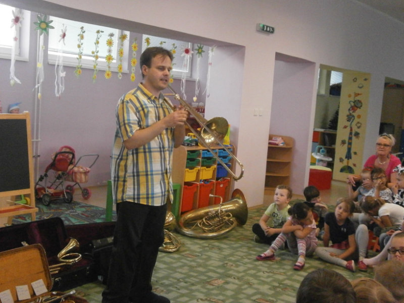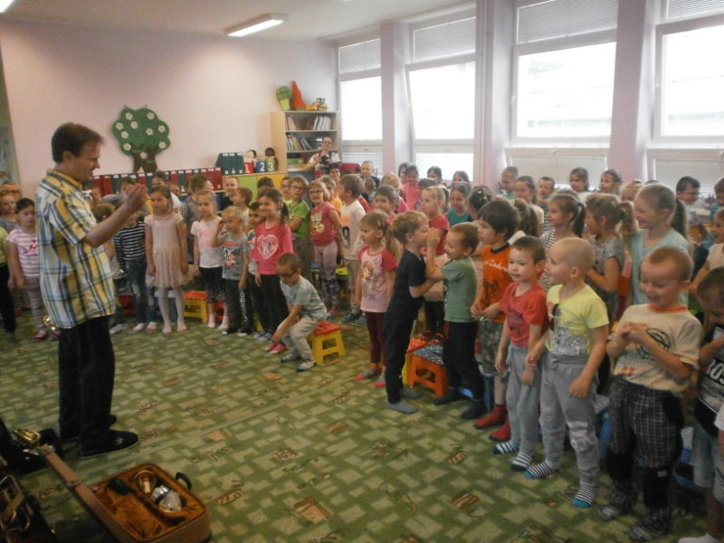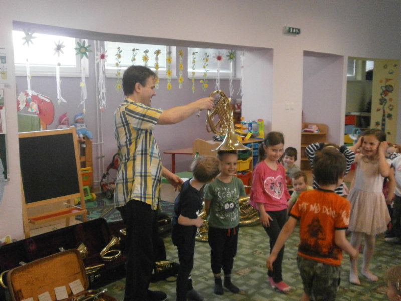 Hudobné dopoludnie s dychovými hudobnými nástrojmi v podaní hudobníka p. Romana Ondrejku bolo pre všetkých predškolákov dňa 25. apríla 2018 veľkým zážitkom.