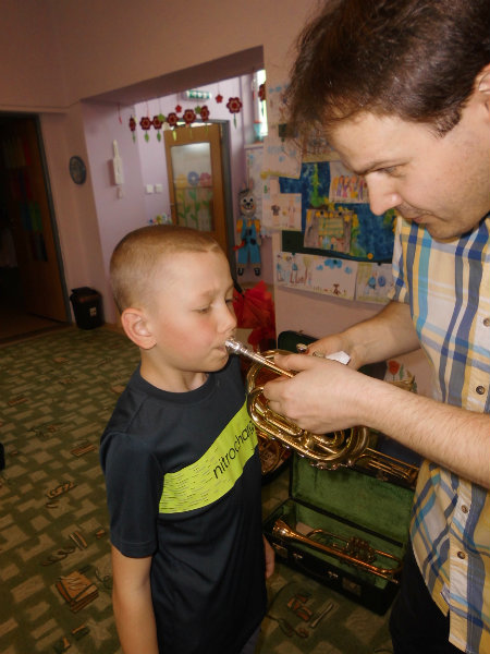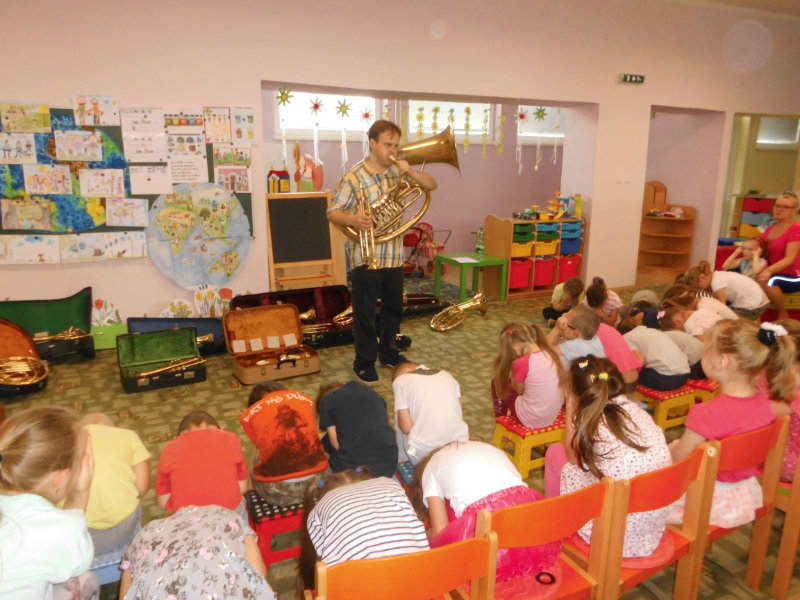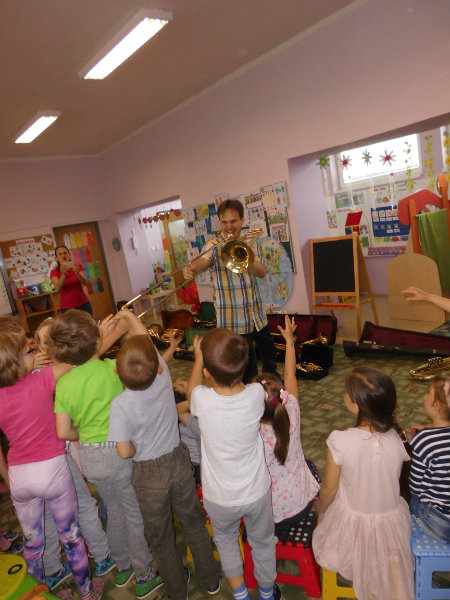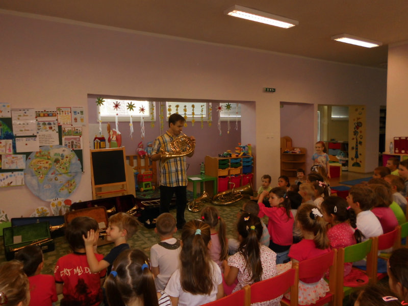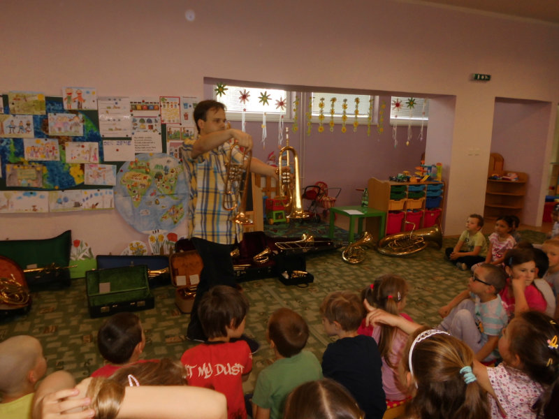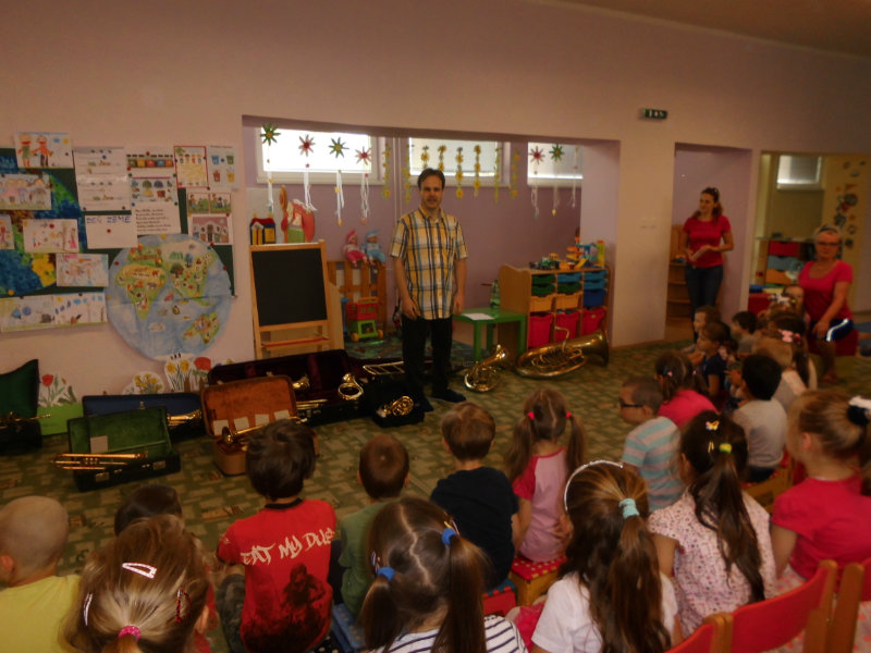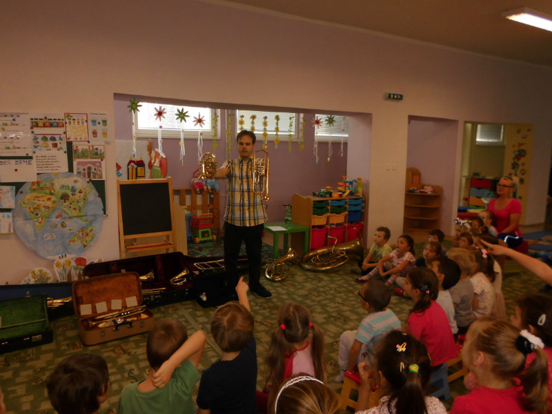 Medzi predškolákov zavítal 25.4.2018 umelec na dychové hudobné nástroje pán Ondrejka Účinkoval sám, ale veľmi zaujímavo a pútavo, s bohatým balíkom dychových hudobných nástrojov zo svojej zbierky. Deti mali možnosť ich nielen počuť, ale i ohmatať, ba dokonca si na nich aj zahrať. Vďaka za poučný výchovný koncert odznela veľkým detským aplauzom a poďakovanie od pani učiteľky.