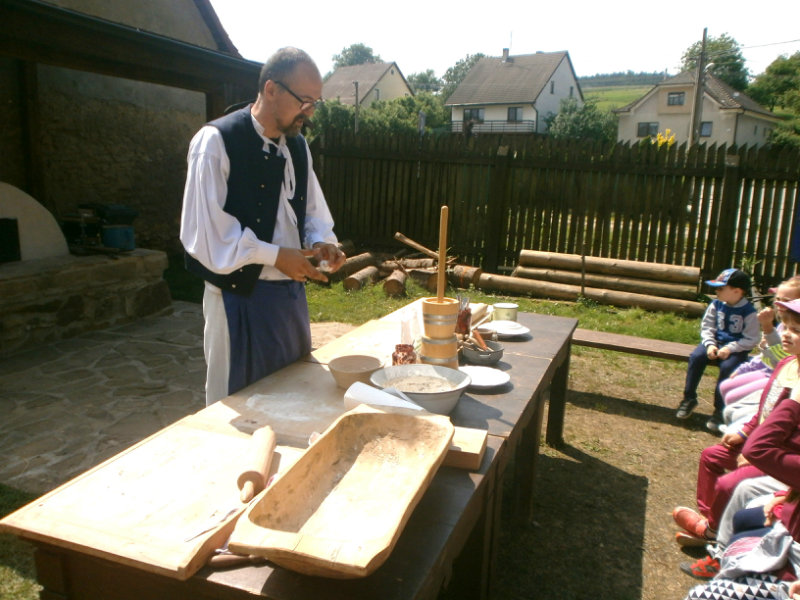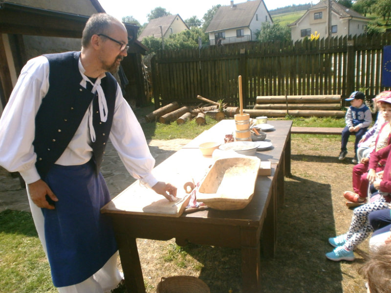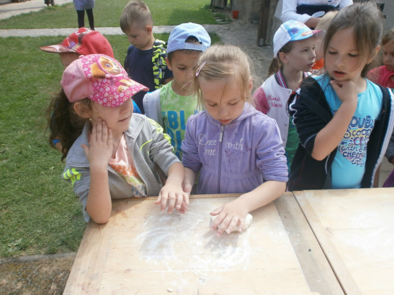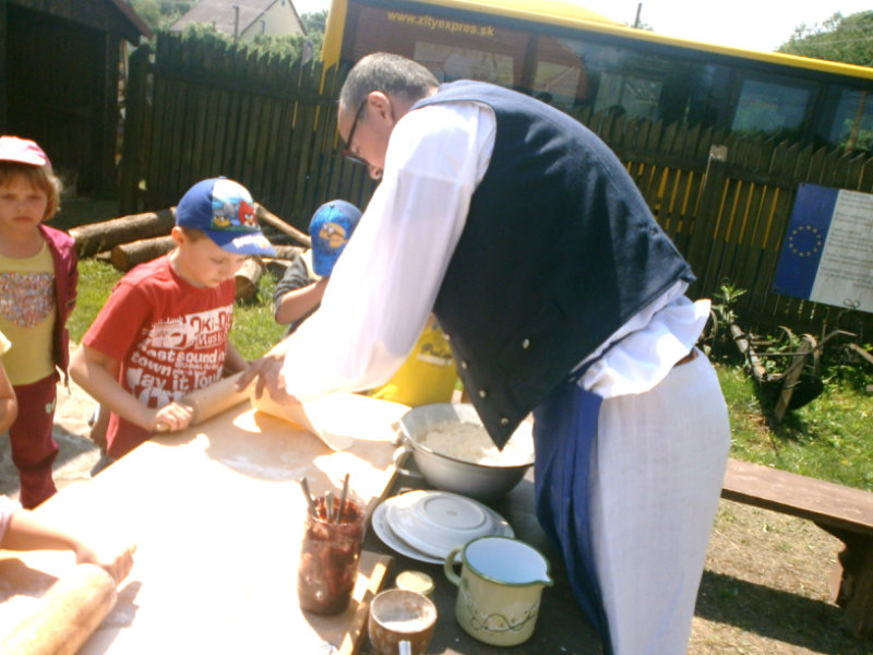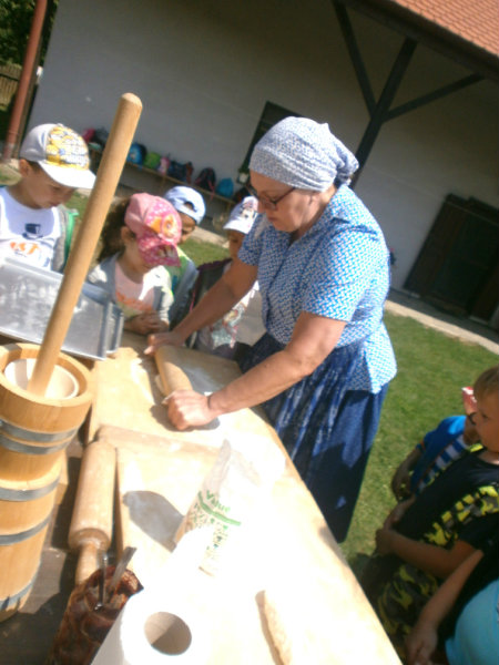 Gazdovský dvor v Turej Lúke sme s našimi predškolákmi Usilovnými včielkami navštívili 22.mája 2018 . Počasie nám prialo a na gazdovskom dvore nás privítala gazdiná s gazdom, ktorí pre nás pripravili zážitkové učenie s pracovnou a ochutnávacou časťou varením ragionálnych jedál, ako sú lekvárové perky, či domáci chlebík a slaninkové posúchy. Deti usilovne miesili, vaľkali, plnili dobrôtky lekvárom, sledovali, ako sa kedysi piekol v peci chlieb a samozrejme v závere si na svojich vlastnoručne pripravených jedlách pochutnali. A aby bolo veselo gazda nám zahral na harmonike známe ľudovky, na ktoré si za spevu s hudbou všetky deti spoločne s gazdinou zatancovali.