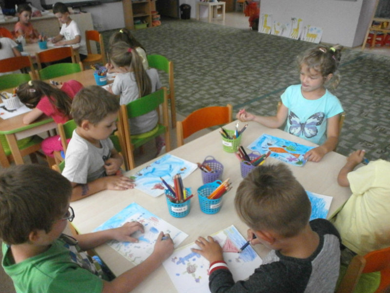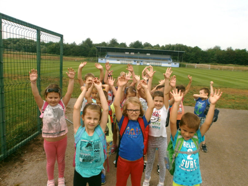 V mesiaci jún 2018 Usilovné včielky absolvovali ako správni predškoláci turistickú vychádzku . Pre hroziaci dážď sme si vybrali kratšiu trasu na štadión , kde sme si zašportovali a následne nabrali veľa nových síl formou občerstvenia, ktoré si deti priniesli v batôžkoch. Nezabudli sme preskúmať turanský potok, ktorý sme pozorovali zblízka, pretože témou týždňa bola Voda a jej tajomstvá. Po vydarenej turistike deti s veľkým záujmom kreslili vodný svet. Z hotových prác sme si vytvorili výtvarnú galériu v priestoroch našej šatne.