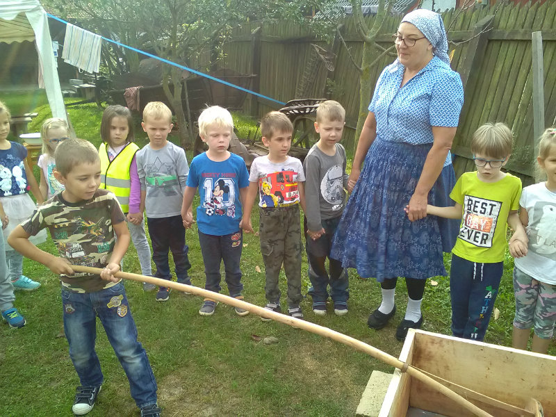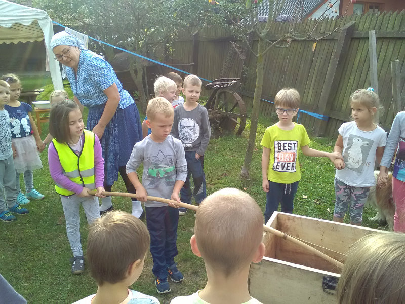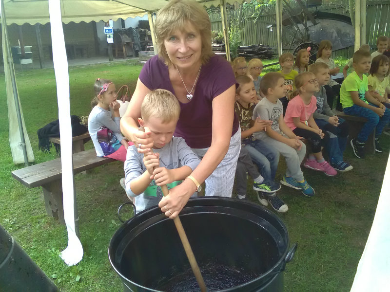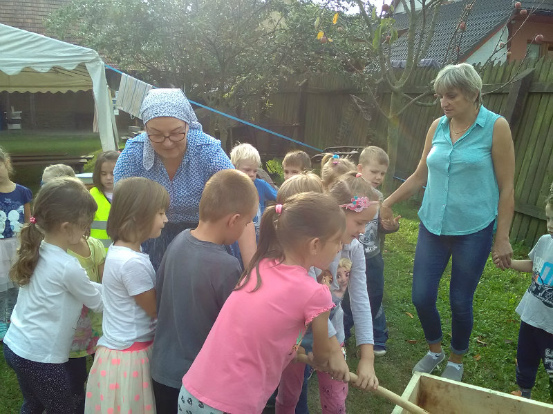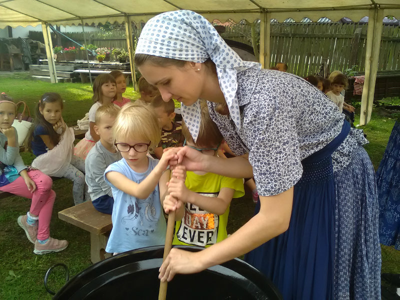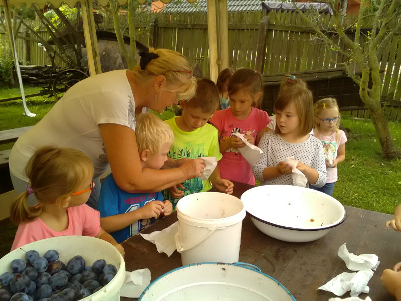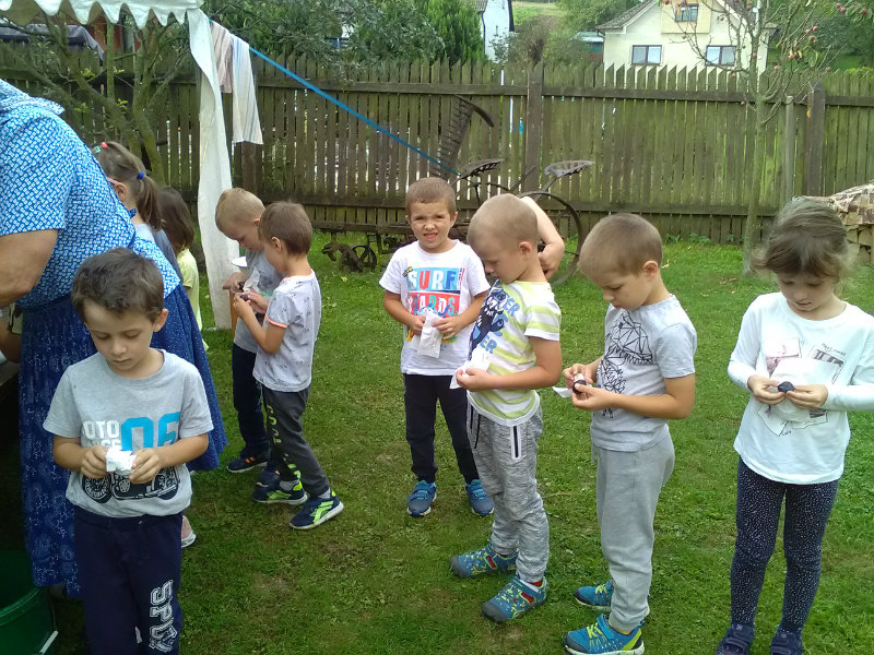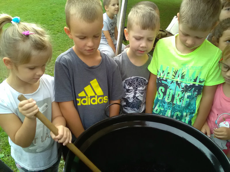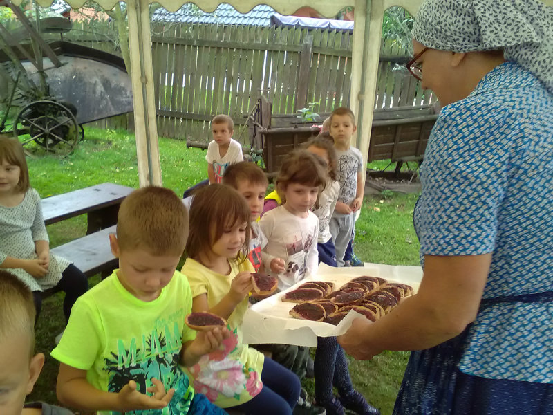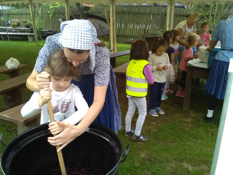 Dňa 14.9.2018 sme boli na exkurzii na Gazdovskom dvore. Veľmi nás zaujali tety rozprávaním o varení slivkového lekváru, nástrojoch, používaných pri tejto práci, čo sme si i samy vyskúšali. Čo sme si navarili, to sme i zjedli, pochutili sme si na sladučkom lekvárovom chlebíku. Naučili sme sa novú ľudovú pieseň a tanček,a s dobrou náladou sme sa vrátili do materskej školy.