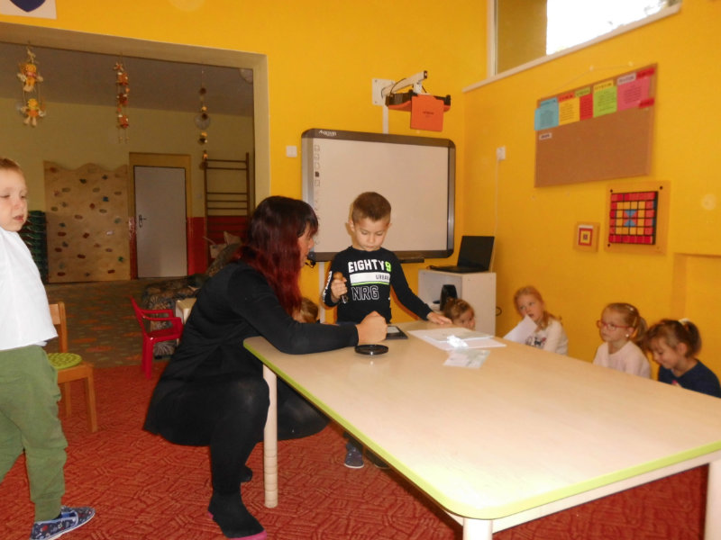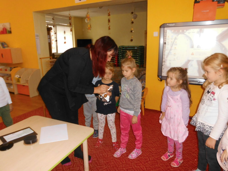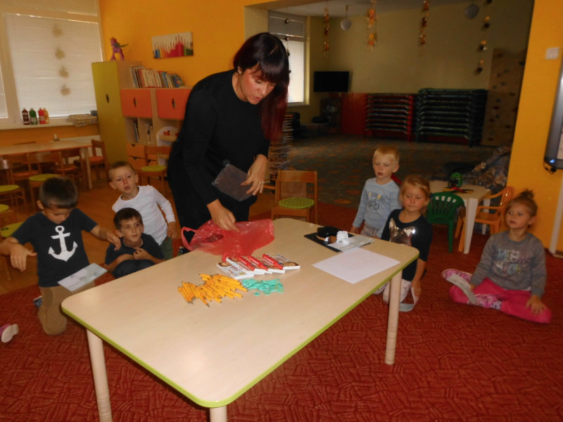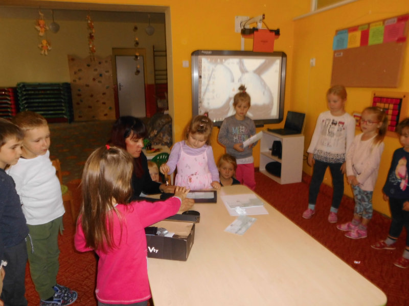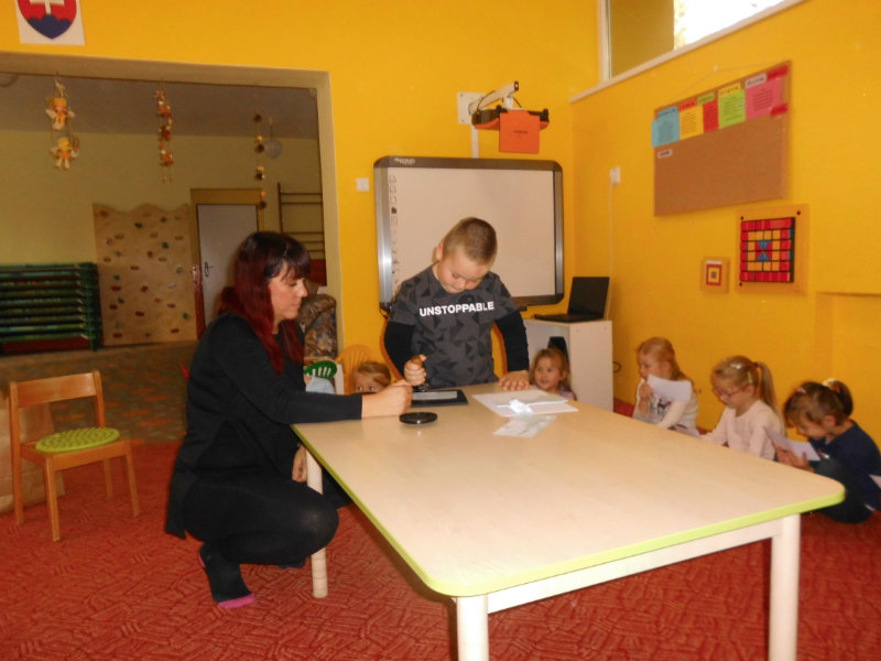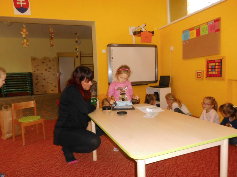Dnes, v stredu. 26.9.2018 nás prekvapilo klopanie na dvere. Prišla k nám teta Gabika, mamička Ondríka Pitlíka, z pošty, ktorá nám na utvrdenie vedomostí o pracovných profesiách priniesla veľa poznatkov a skúseností zo svojej práce. I my sme mali možnosť vyskúšať si razítkovanie šekov, obálok, posielanie balíkov. Jej rozprávanie bolo zaujímavé a veľmi sa nám páčilo. Ako odmenu sme dostali pero, žetóny a sladkú čokoládku, ktorú nám poslali tety poštárky. Ďakujeme teta Gabika.