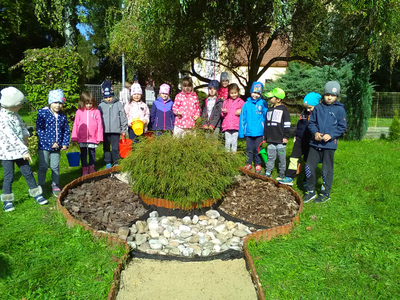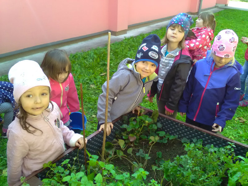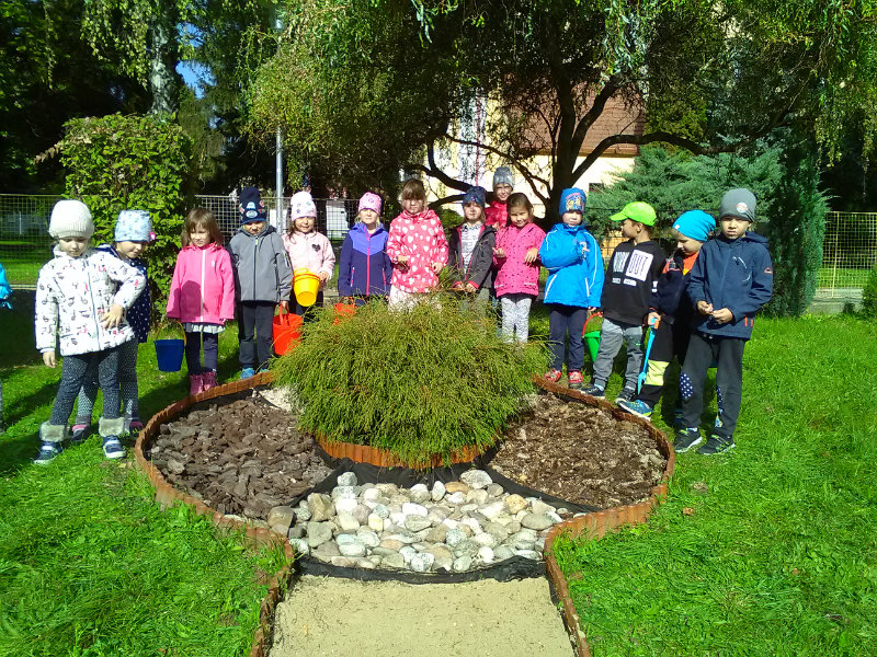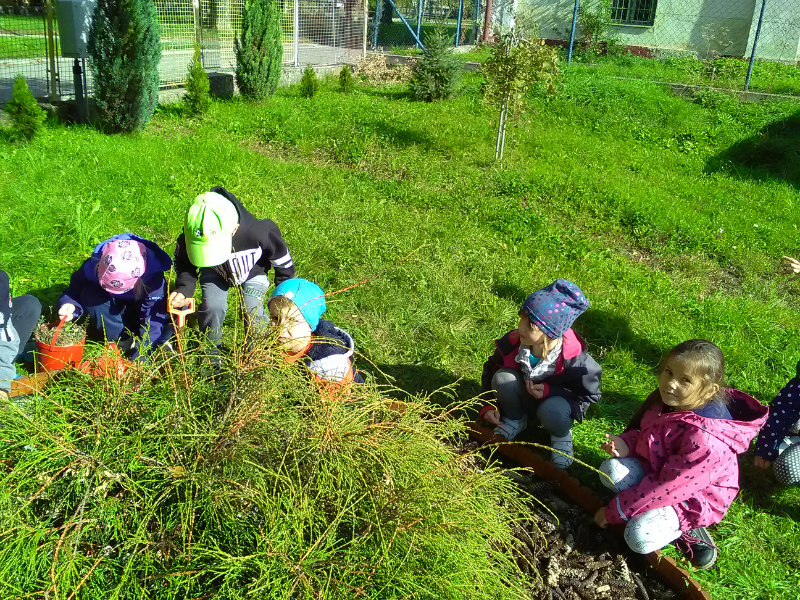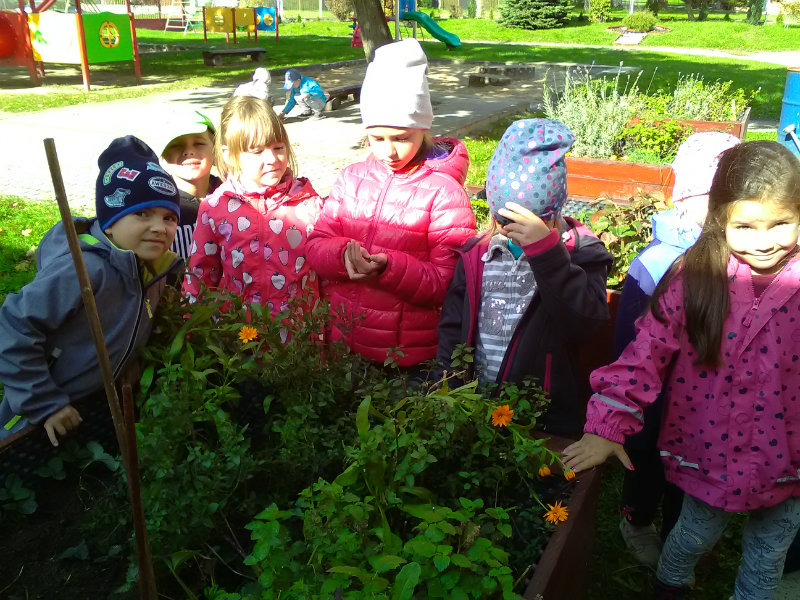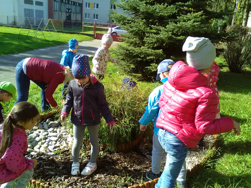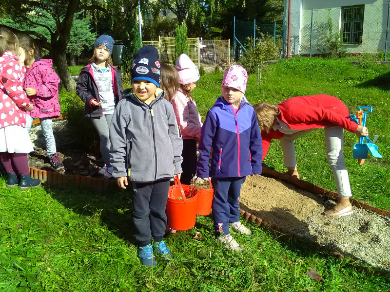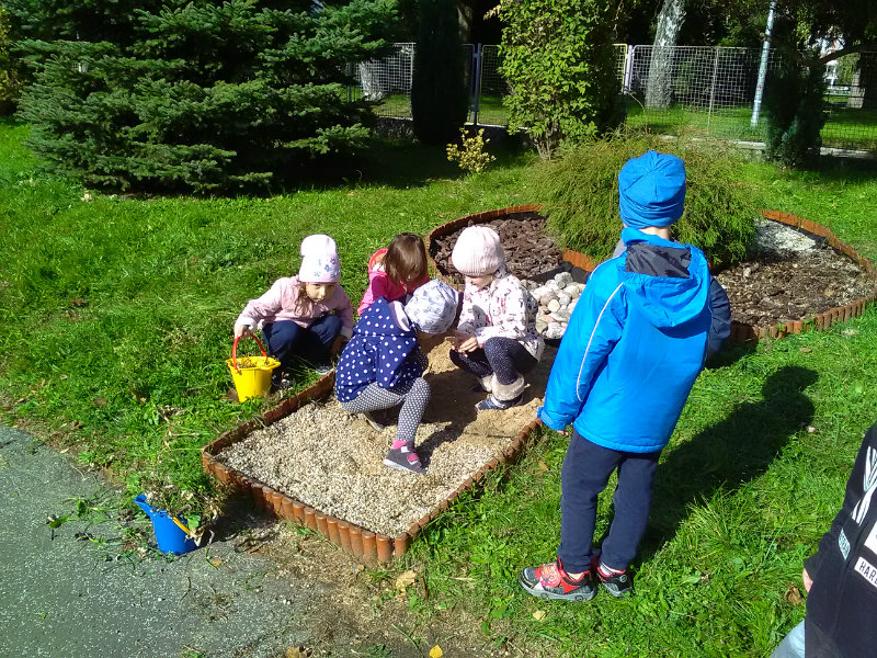 Spoločne s pani učiteľkou sme vyčistili pocitový chodník a pozberali úrodu z našich minizáhrad.