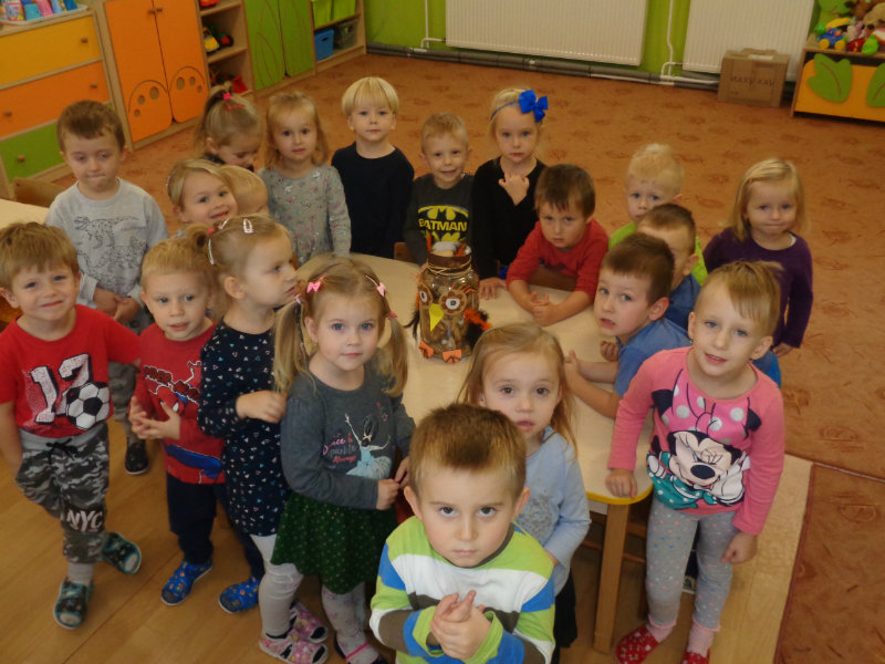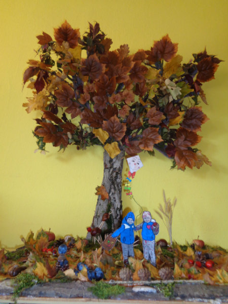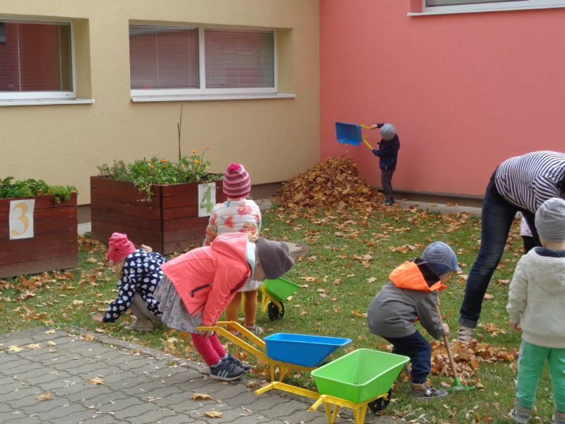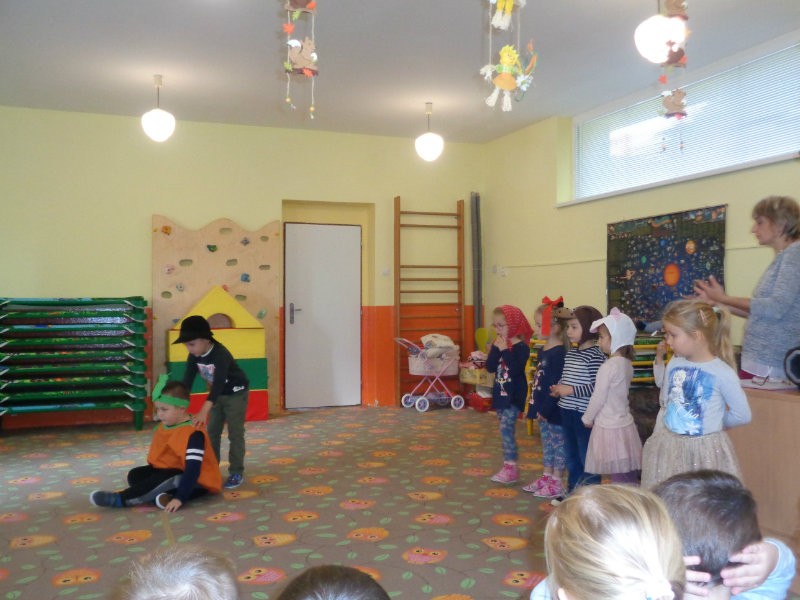 Naša prvá jeseň v materskej škole bola pestrá. Spoločne sme si vyrobili "tetku Sovu" - maskot našej triedy, doma s rodičmi zostrojili všeličo z prírodnín, maľovali, lepili, či upratovali dvor.Navštívili sme i kamarátov v triede č.3, ktorí nám zahrali divadielka "O repe" a "O Pampúšikovi".