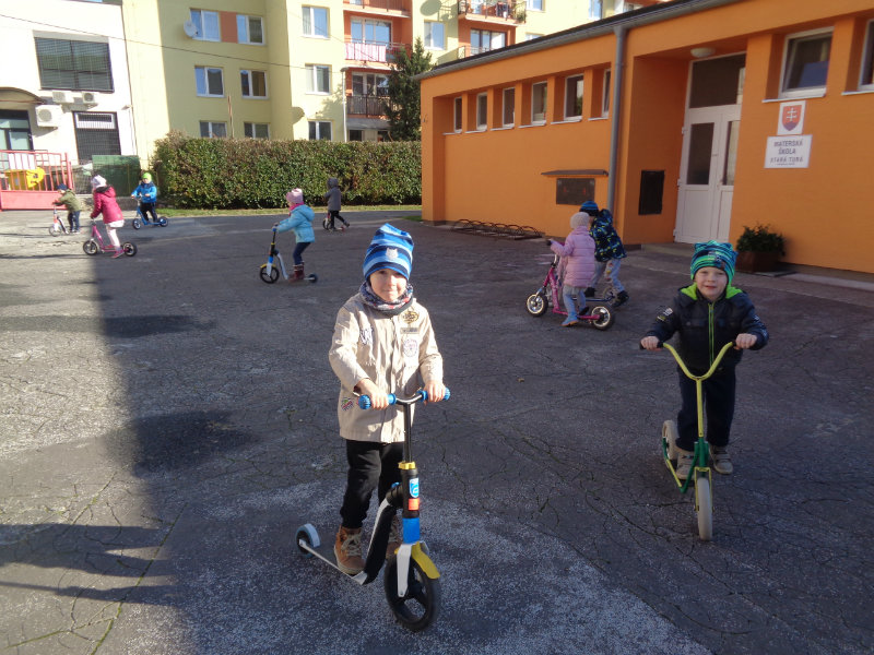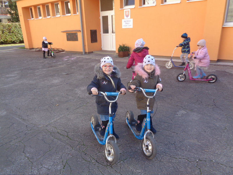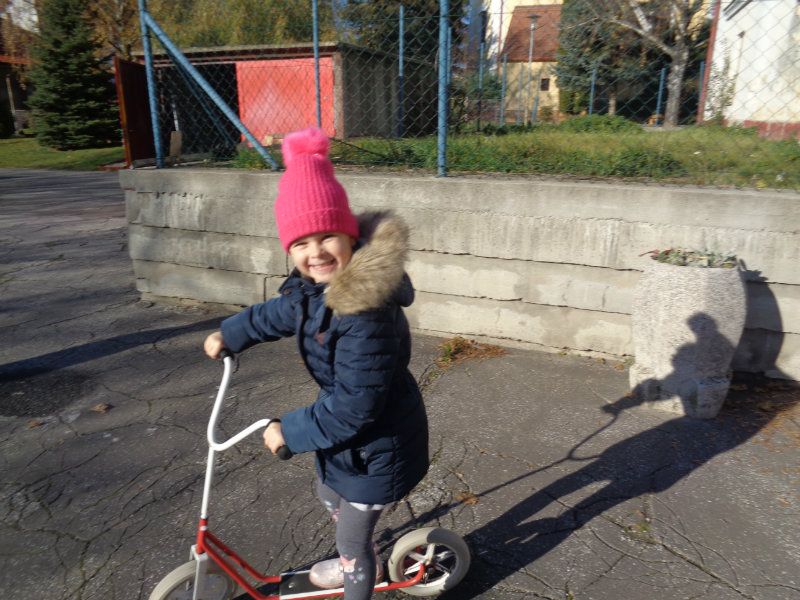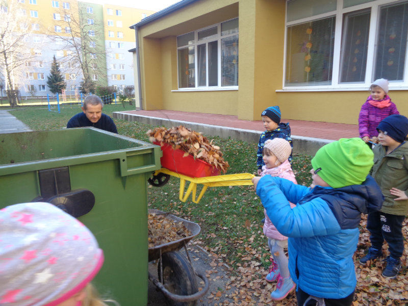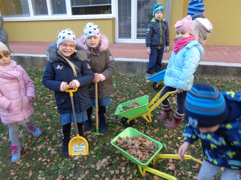 Vo štvrtok, 15.11., sme si zobrali do rúk hrabličky, fúriky, metličku a lopatku a snažili sa pomôcť ujovi Paľkovi pri upratovaní školského dvora . Pretože sa nám veľmi darilo, pani učiteľky Olinka a Ivetka nás odmenili vozením sa na kolobežkách a pretekmi v behu.