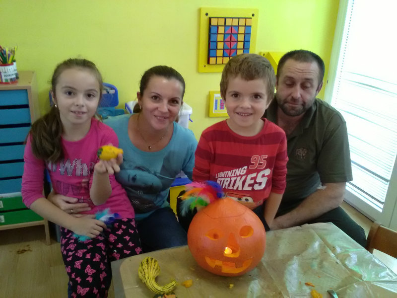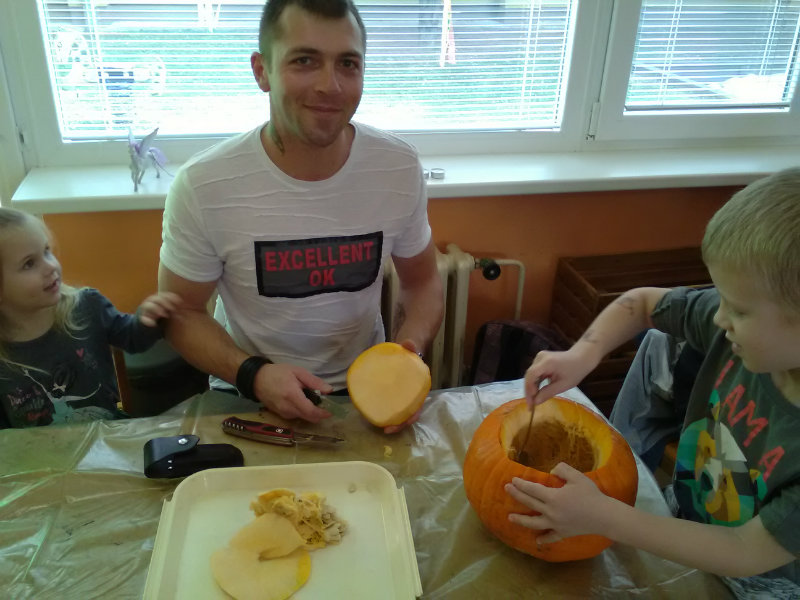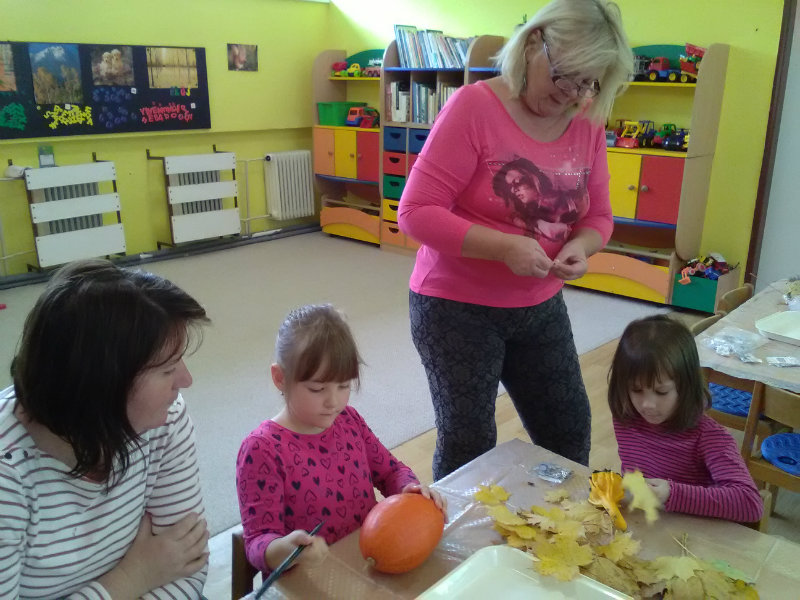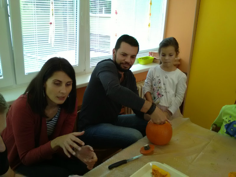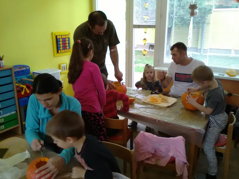 Vo štvrtok, 25.10.20185 sme sa stretli na tvorivom popoludní deti a rodičia. Zaspievali sme si, zarecitovali básne s jesennou tematikou. Naše šikovné ruky dlabali, vyrezovali, až vznikli strašidelné svetlonosy. Ozdobili sme ich prírodninami, farebnými pierkami. Na záver nám rodičia zapálili sviečky a ich plamienky blikali zo strašidielok. Odmenou nám bolo pohostenie od mamičiek Katky a Lenky.