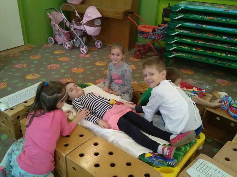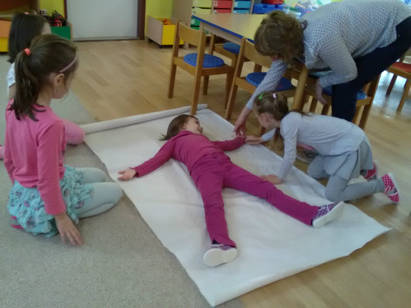 V rámci Týždňa zdravia sme si s pani učiteľkami Milkou a Soničkou pripravili z kamarátov modely a vytvorili krvný obeh, mozog . Práca sa nám veľmi podarila. Naše poznatky sme využili v hre na lekárov.