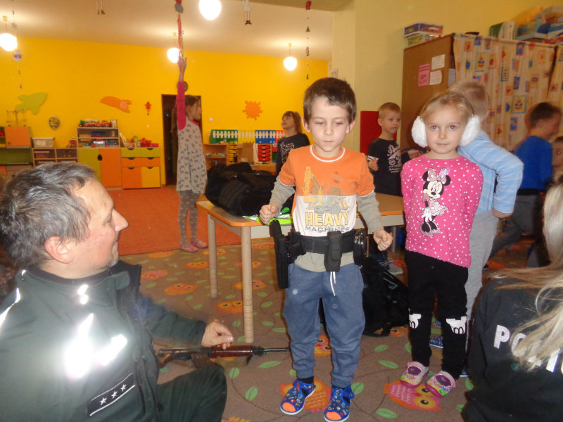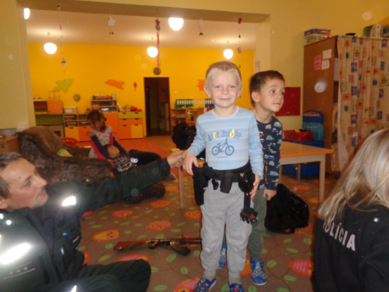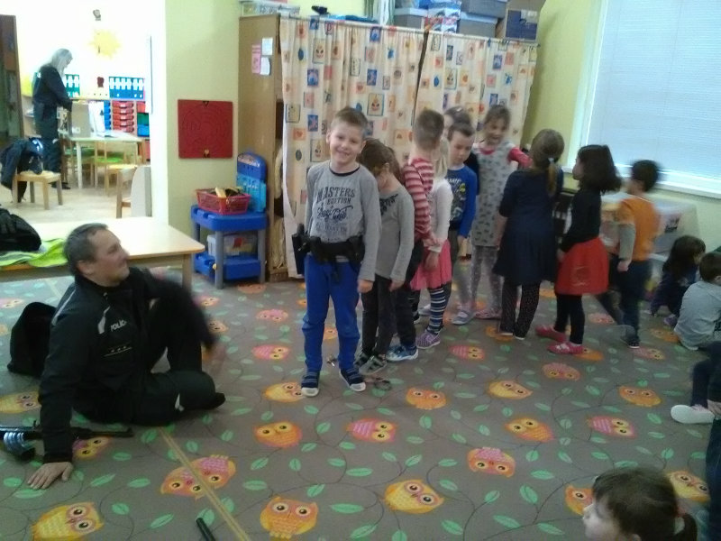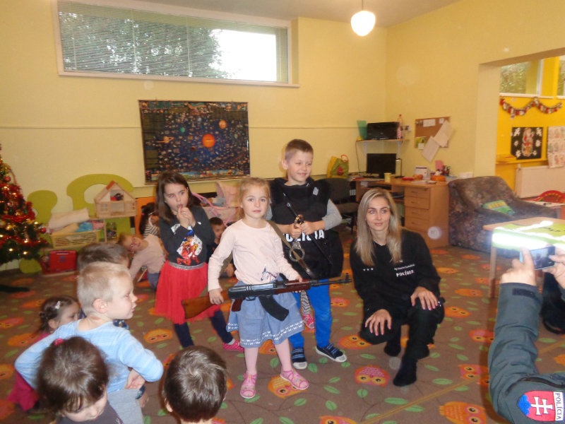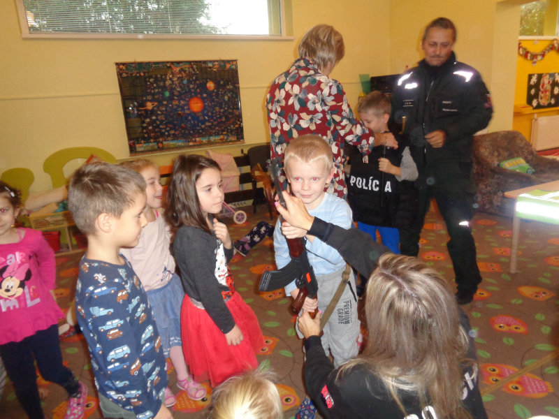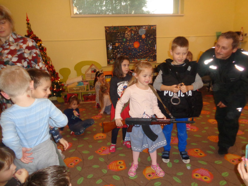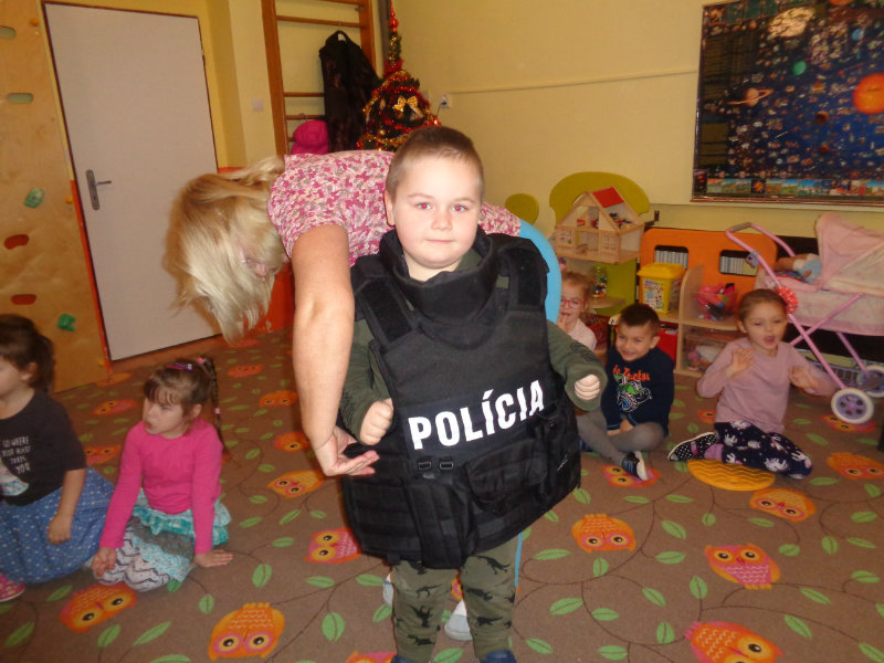 V pondelok, 3. decembra, nás do materskej školy prišli navštíviť policajti, ujo Halienka s kolegyňou Alexandrou. Zaujímavou formou nám porozprávali, aké nebezpečenstvá na nás čakajú na ulici a ako sa pred nimi chrániť. Najviac sa nám páčilo, že sme si mohli vyskúšať policajtskú vestu, zbrane, opasok, Ďakujeme.