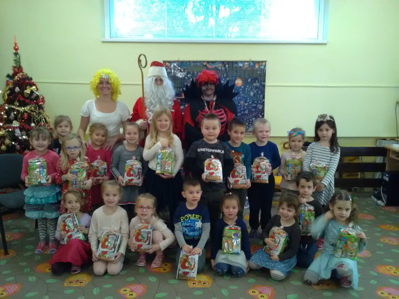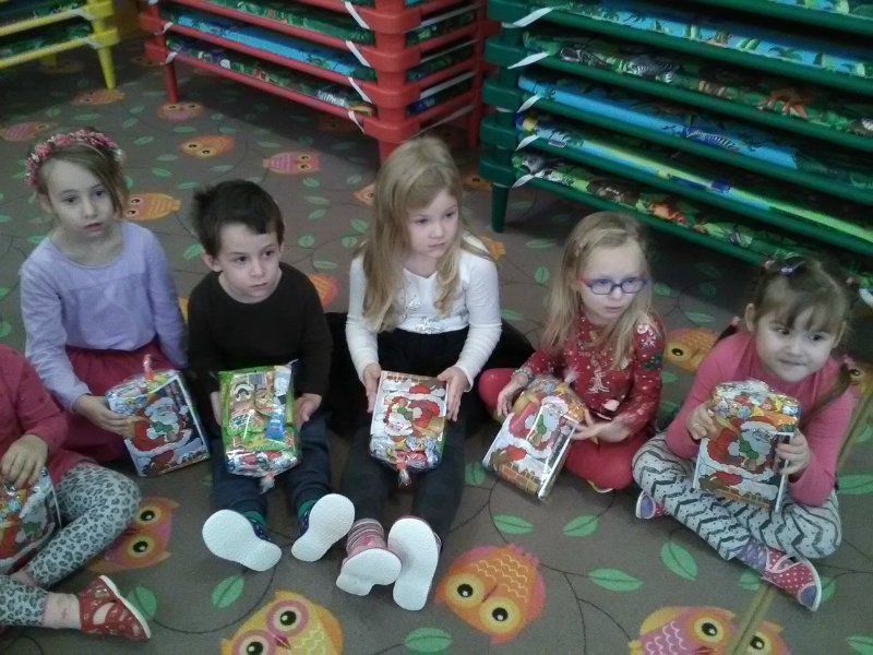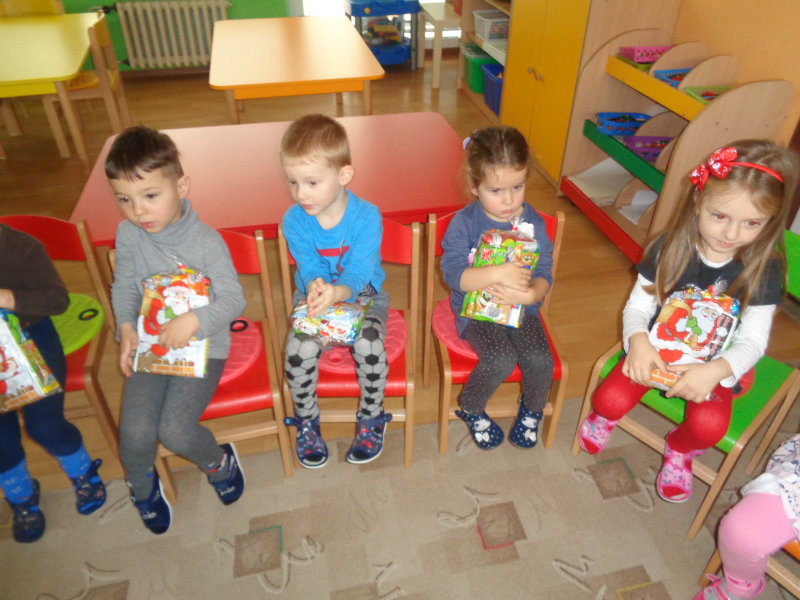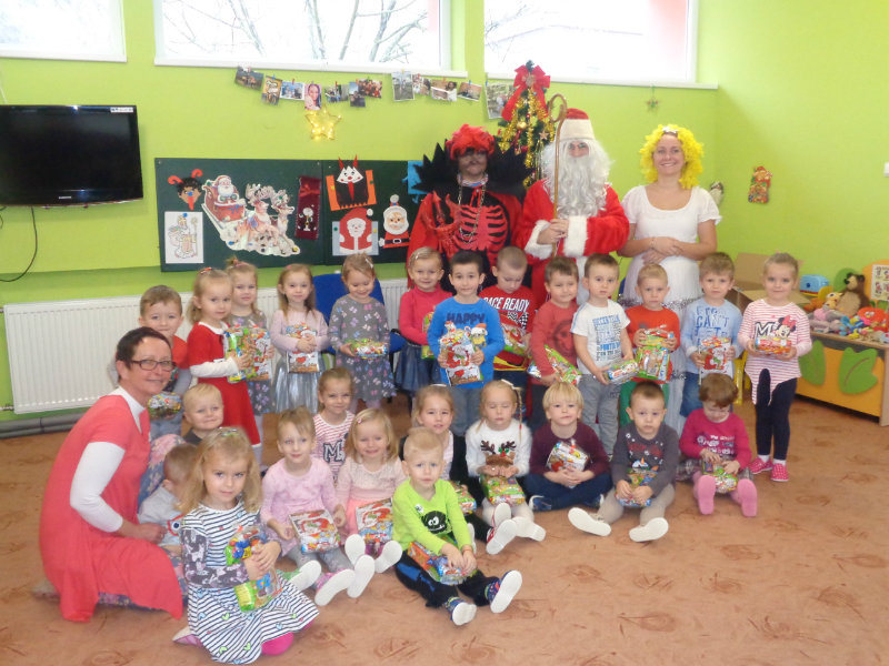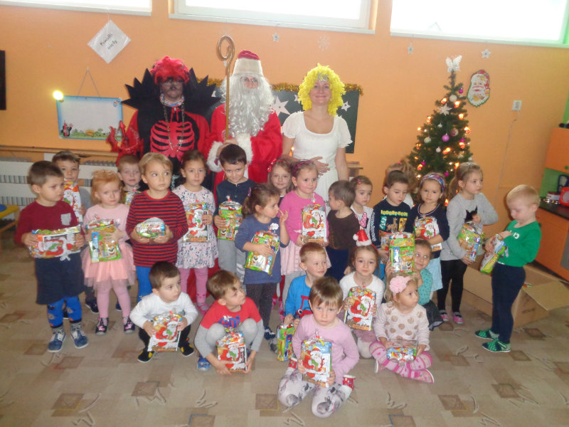 V utorok. 4. decembra k nám do MŠ pri cukrárni zavítal Mikuláš. Zato, že sme dobre poslúchali celý rok, nás odmenil balíčkom plným sladkostí.