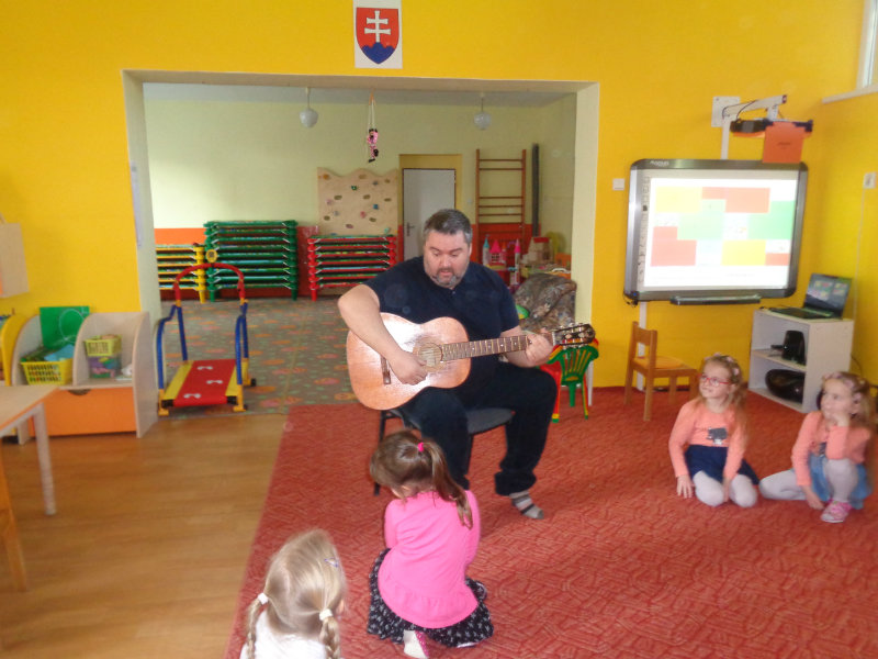 V utorok, 26.2.2019 nás v materskej škole, v 3. triede prekvapil ujo Peťo so svojou gitarou. Zahral, zaspieval , čo sa nám veľmi páčilo.Ďakujeme za príjemné dopoludnie. Priniesli sme si hudobné nástroje a zahrali a zaspievali s ujom Peťom Pitlíkom, Ondríkovým tatinom. Ďakujeme za príjemné dopoludnie.