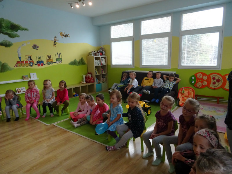 Vo štvrtok, 3.septembra, nás pozvali mamičky do materského centra Žabka. Pripravili si pre nás zaujímavé divadielko o psíčkovi a mačičke, v ktorom sme vystupovali i my. Spoznávali sme suroviny na výrobu torty a varili smeju pre psíčka a mačičku. Potom sme tvorili svietniky s jesennou tematikou a ježkov z listov. Ďakujeme p. Kandríkovej a Kýškovej za prekrásne dopoludnie.