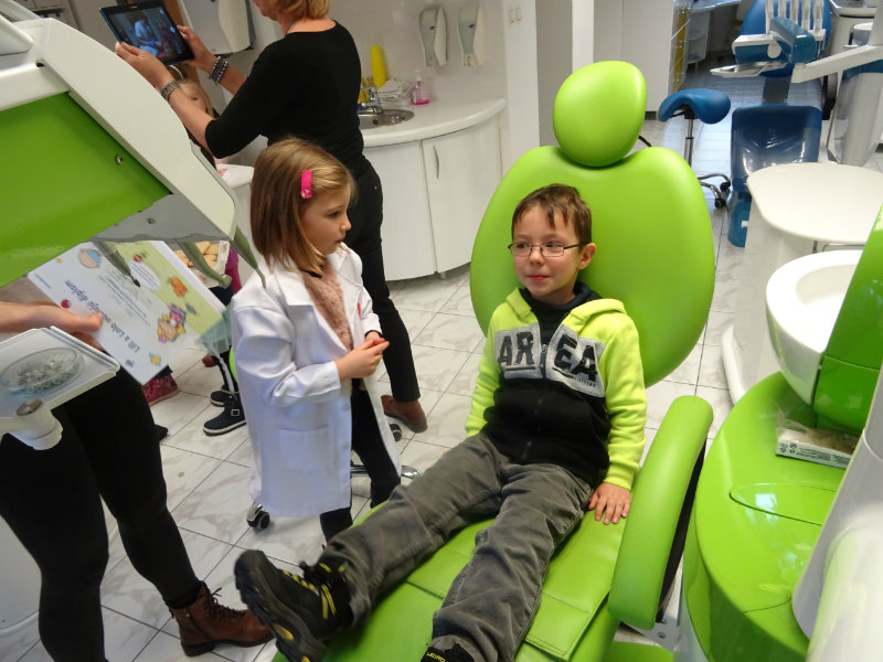 Ani upršaný deň nás neodradil od návštevy zubného lekára, pána Galbavého. Dňa 13.11. nás pozval do svojej ambulancie a za asistencie svojej dcérky Elišky, "zubnej sestričky", a pani manželky, oboznámili deti s prevenciou zubného kazu. Každému pán doktor skontroloval zúbky, povozil na kresle a za odvahu a statočnosť daroval diplom. Ďakujeme celej rodine Galbavej za čas a získané skúsenosti.
