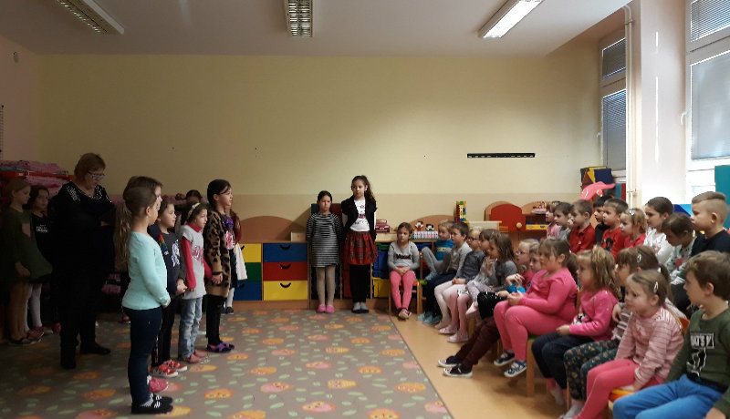 Dňa 11. decembra 2019 zavítala p. Božka Michalcová so svojimi deťmi zo školskej družiny s vianočným programom plným vianočných piesní, kolied a vinšovačiek. Vďaka milému umeleckému prednesu kamaráti zo ZŠ s vychovávateľkou B. Michalcovou deťom predškolských tried a tiež učiteľkám v MŠ spríjemnili predvianočné obdobie.