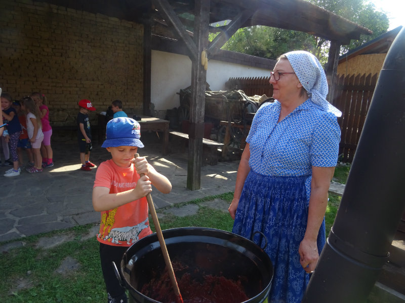 V stredu 16.9.2020 sme navštívili Gazdovský dvor v Turej Lúke, kde sme sa dozvedeli, ako sa varí slivkový lekvár. Skúsili sme si postup výroby a naučili sa aj ľudovú pesničku, tanček a pohybovú hru. Tešíme sa na ďalšie návštevy.