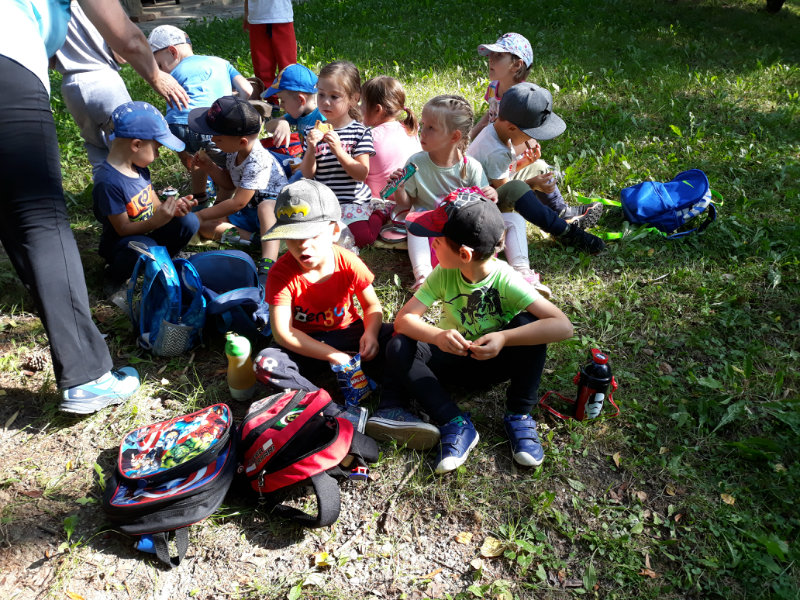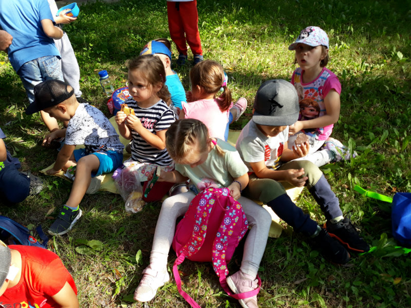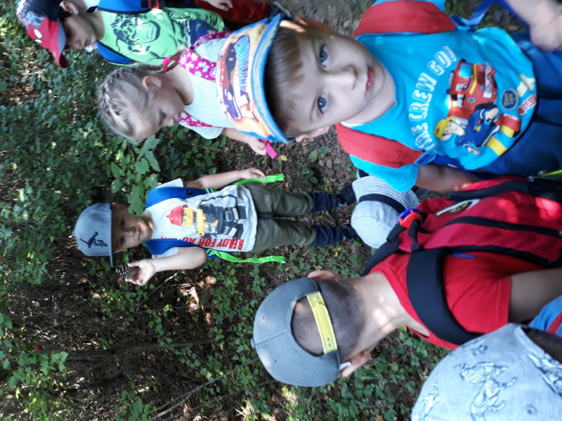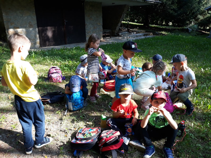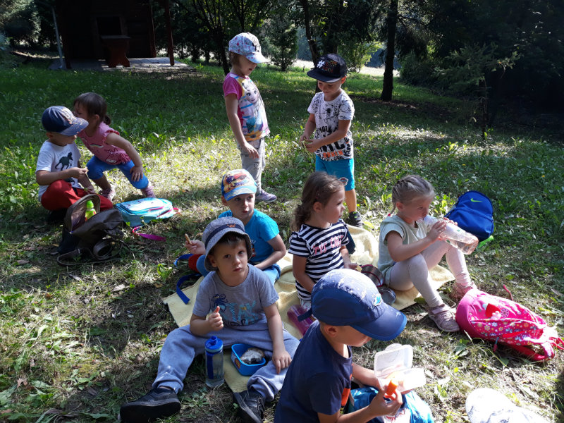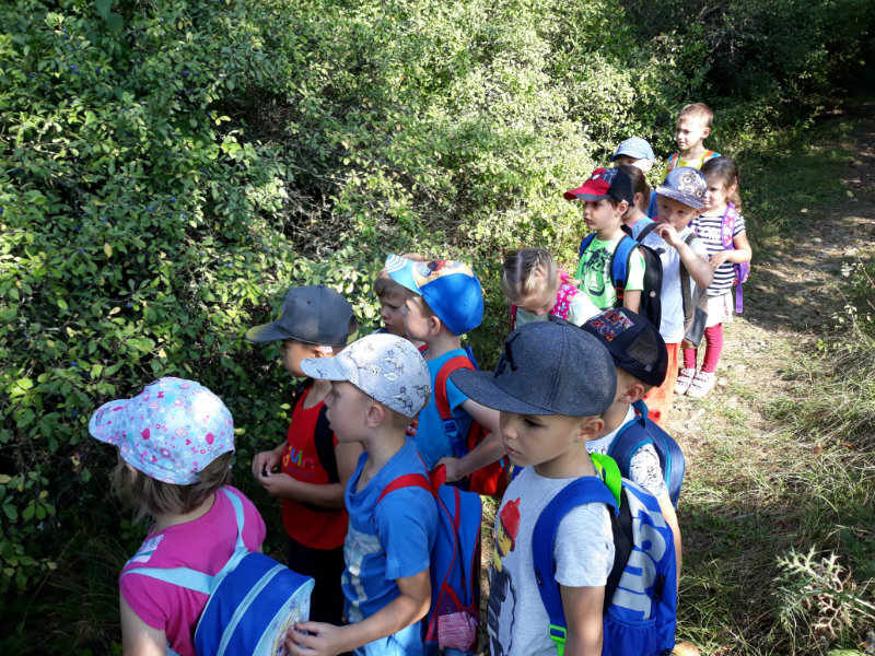 Bol krásny slnečný deň a "slniečka" sa vybrali na turistiku. Cestou nás sprevádzali dvaja škriatkovia Šťavelko a Ríbezliačik.. Pomohli nám nájsť lesné plody, hríby, húsenicu i bodliak, ktorý roztrhal dúhovej víle šaty. Po namáhavej ceste sme si spravili piknik. Máme krásne zážitky.