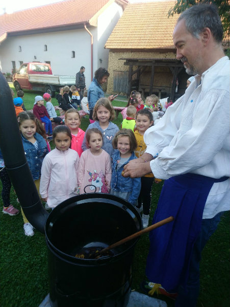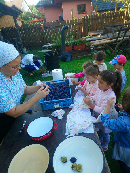 Tradičné jedlá zo sezónneho ovocia našich záhrad – zo sliviek, obsahujú nielen veľa vitamínov osožných pre náš organizmus, ale sa i zaujímavým spôsobom spracúvajú, o čom sa naše deti presvedčili vlastnými rukami pri príprave a samotnom varení slivkového lekváru. Nezabudlo sa ani na ľudové tradície , po práci si všetci spoločne zaspievali a zatancovali pri harmonike.
