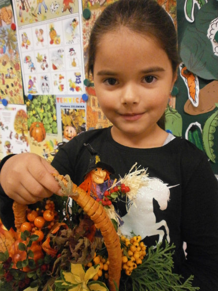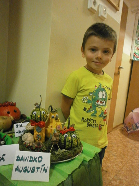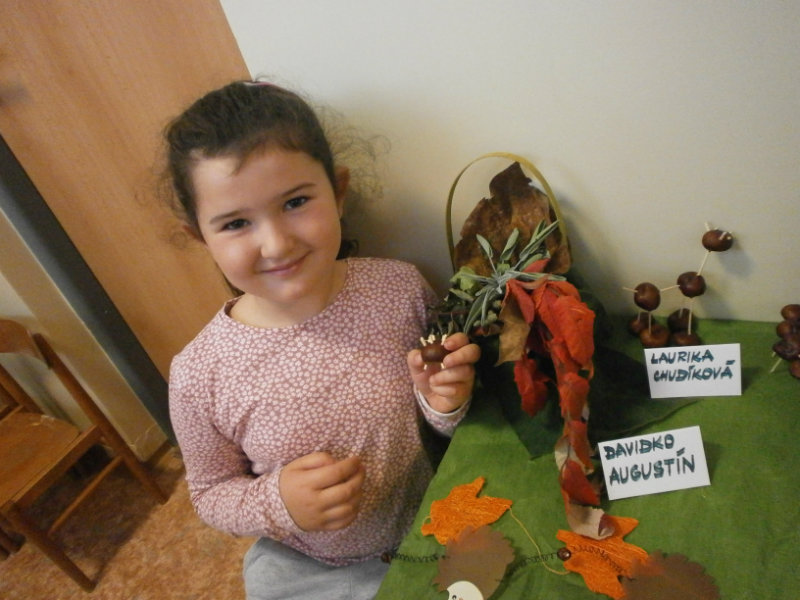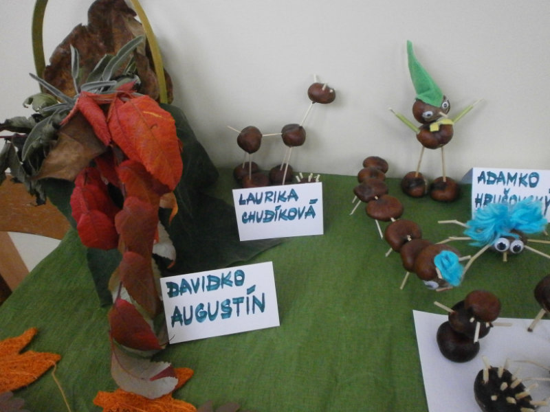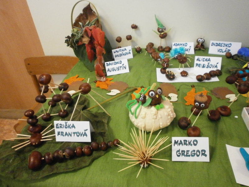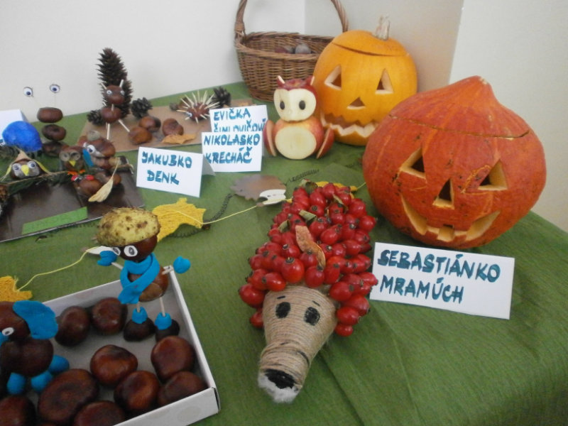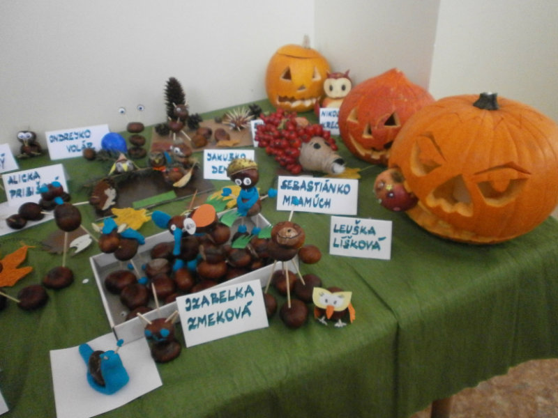 Jesenné obdobie v našej 1. triede je plné farieb, krásnych a kreatívnych výrobkov z plodov jesene , ktoré deti zhotovili doma spoločne s rodičmi , zdravého ovocia a zeleniny, z ktorého sme vyrábali zdravé šaláty, ochutnávku, výstavku nielen rôznych druhov ovocia a zeleniny, ale i možnosti jeho využitia v rôznych iných formách, využili sme na rozvoj fantázie i jesenné lístie počas pobytu vonku...