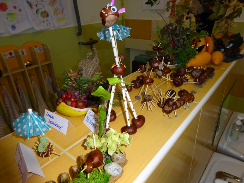 Jeseň je obdobie zberu úrody.Prináša nám rôzne druhy ovocia, zeleniny a iných plodov.V spolupráci rodičov, detí a celej triedy sme použili plody zeme a stromov na rôzne nádherné výtvory. A keďže chceme byť zdraví, tak ovocie a zeleninu, i od rodičov, denne jedávame.