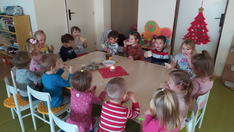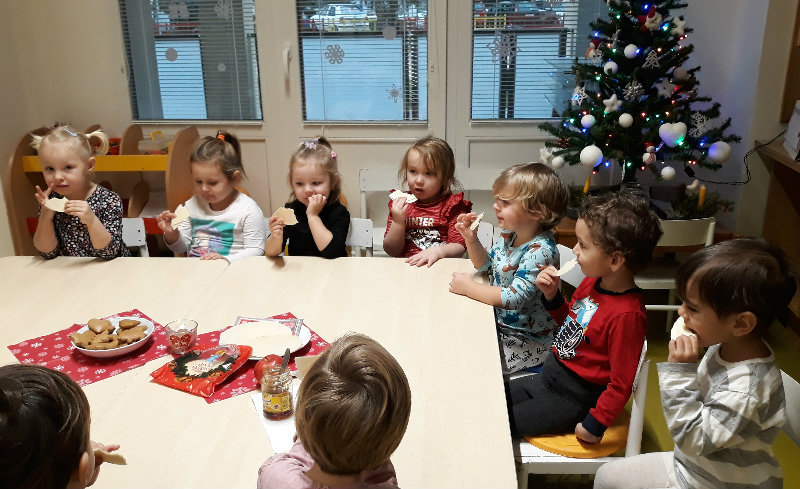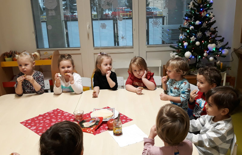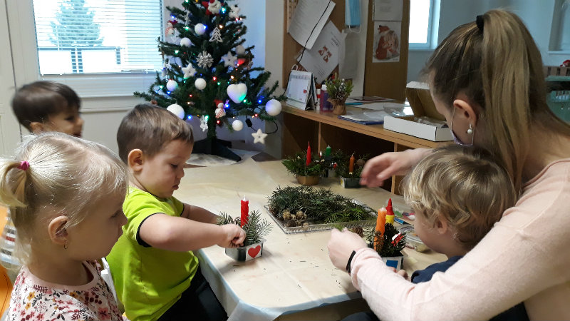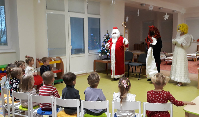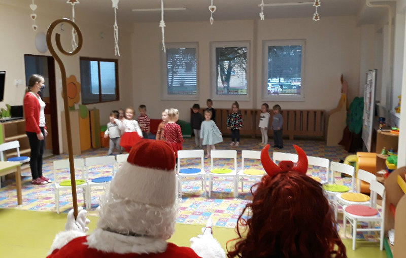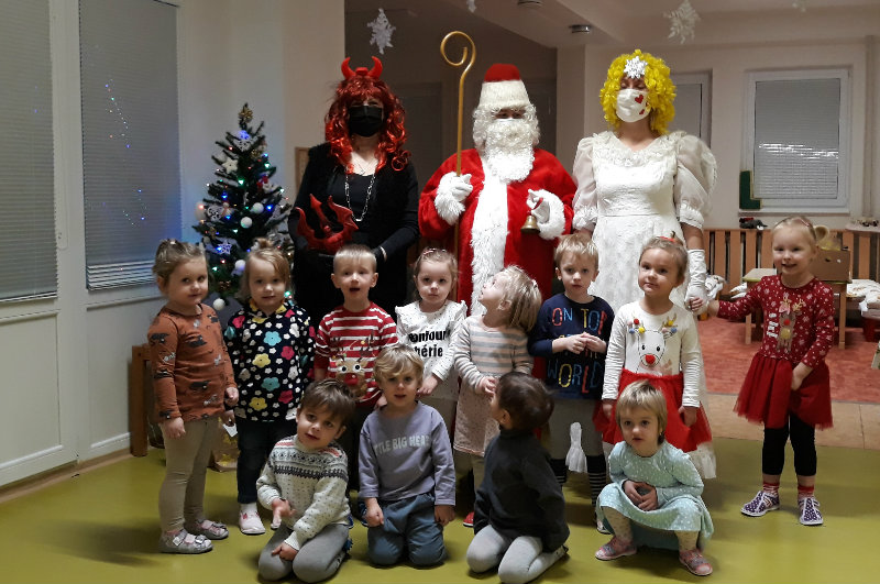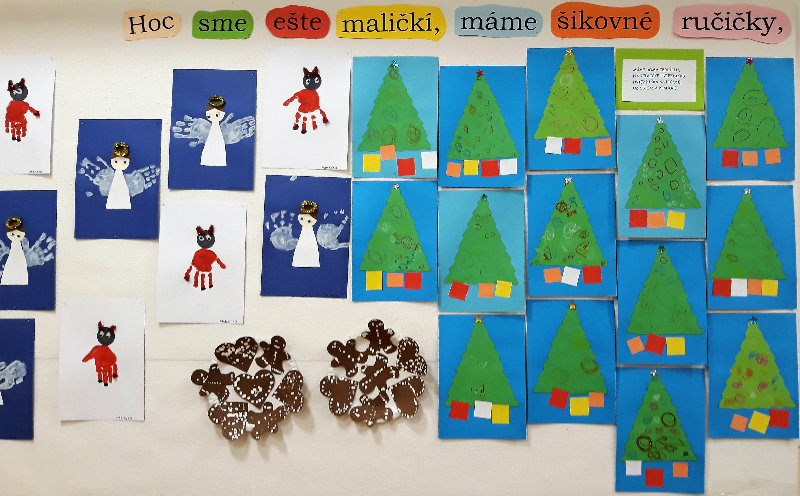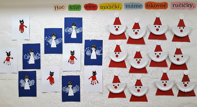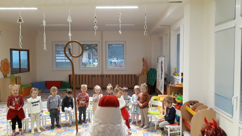 Nastal čas adventu - obdobie, keď u detí kulminuje ich zvedavosť, očakávanie a nadšenie z príchodu Vianoc. Najskôr sme si vyzdobili stromček, triedu, šatňu, aby sme mohli privítať Mikuláša. Napriek počiatočným obavám pri príchode Mikuláša a jeho pomocníkov anjela a čerta sa na tvárach detí postupne zjavili úsmevy. Dokázali sme im zarecitovať básničku a zaspievať pesničku, za čo sme dostali od Mikuláša taštičku s dobrotami.