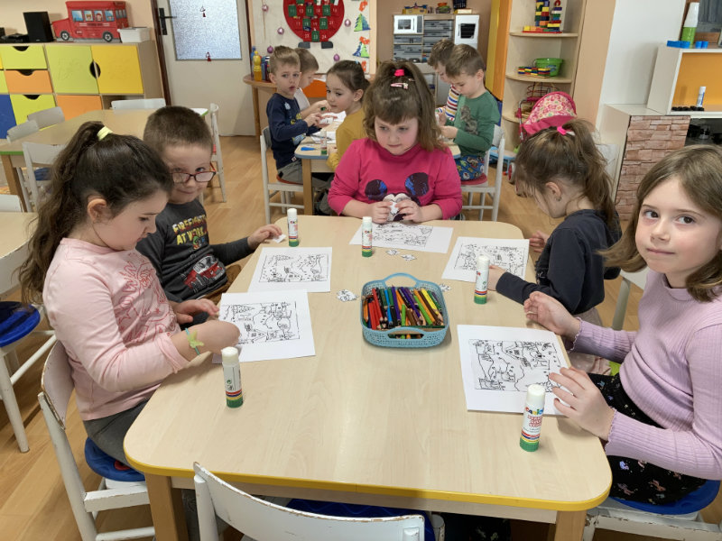 Predškoláci Usilovné včielky sa tešili z bielej snehovej nádielky, formou rôznych hier a aktivít pracovali s témami jednotlivých týždňov.