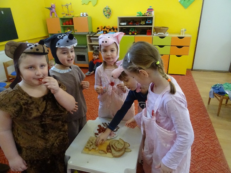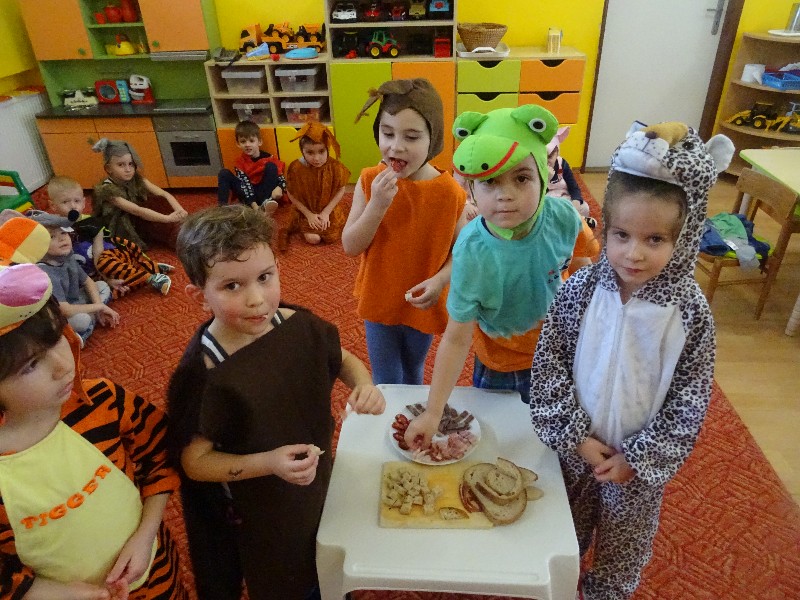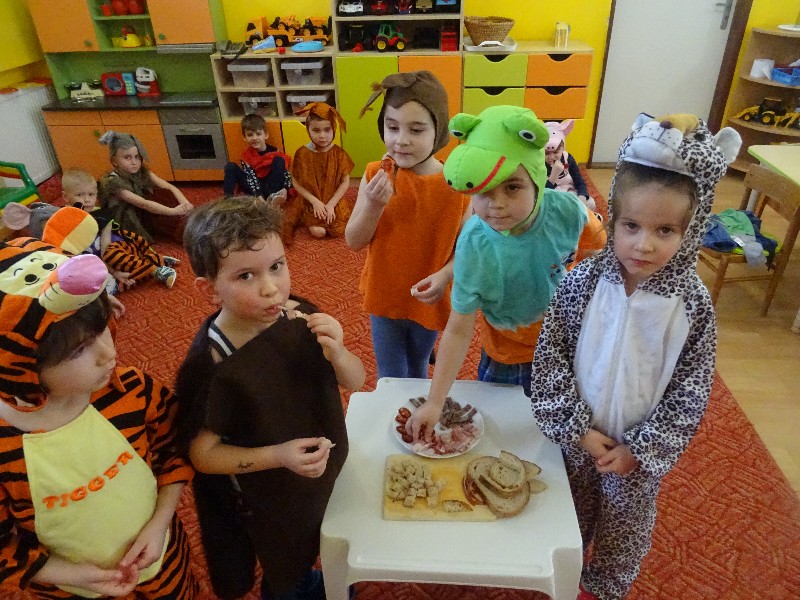 Fašiangy, Turíce...znelo v našej triede vo štvrtok 11.2.2021. Kedže k fašiangom patrí karneval nechýbal ani u nás. Premenili sme sa na triedu plnú zvieratiek. Spev, tanec, radosť a dobrú náladu sme mali na rozdávanie. Na záver sme si pomaškrtili na tradičných fašiangových jedlách. Tešíme sa opäť o rok.