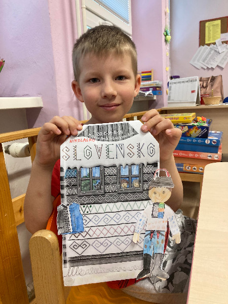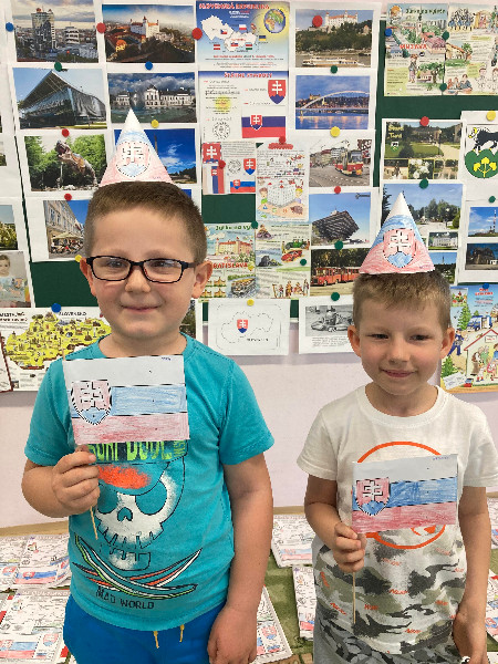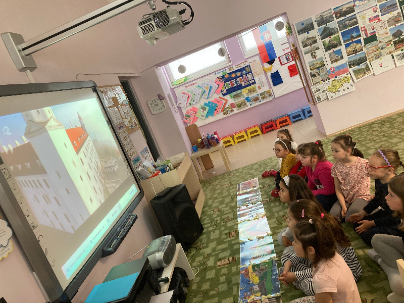 Slovensko moja vlasť, interaktívne cestovanie po Slovensku, spoznávanie jeho krás a prírodného bohatstva, národných symbolov, významných Slovákov, Slovensko v minulosti, s týmito témami sme pracovali po celý týždeň prostredníctvom rôznych médií, detskej náučnej literatúry, formou hier, s prezentáciami, výtvarným i hudobným vyjadrením.