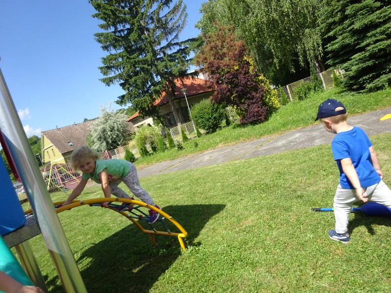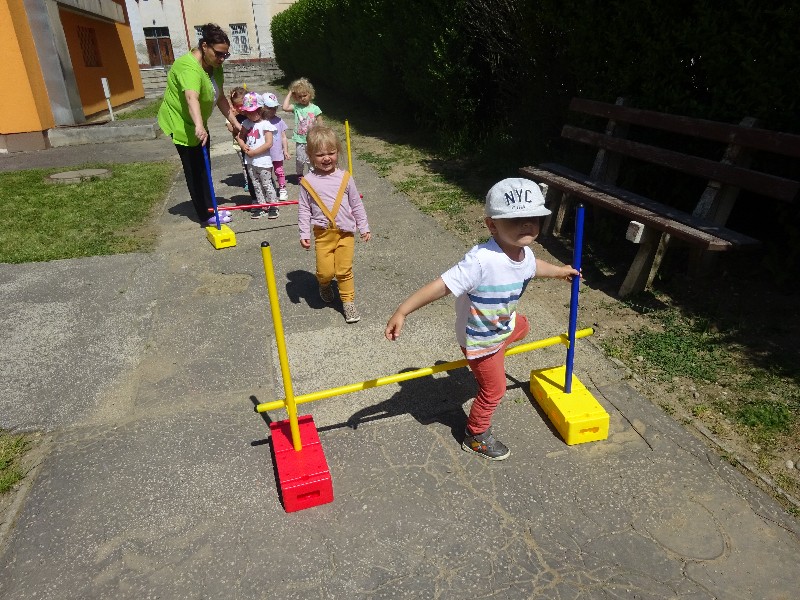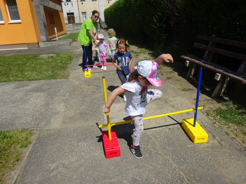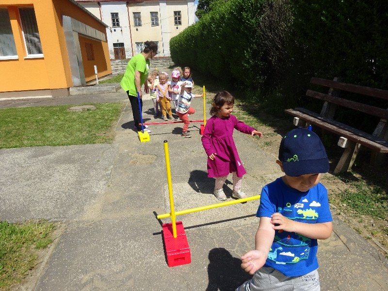 Pondelok 14.júna 2021 sa niesol v znamení športových hier v areáli našej MŠ. Aj my, deti z 1.triedy, sme as k nim s radosťou pridali. Preliezali sme cez tunel, cvičili na fitness posilovacích strojoch, hádzali na cieľ, chodili pomedzi kužele a zdolávali prekážky. Bolo nám hravo, zdravo a veselo. Na koniec sme sa občerstvili zdravým ovocím, ktoré nám priniesla naša kamarátka Peťka pri príležitosti svojich narodenín.
