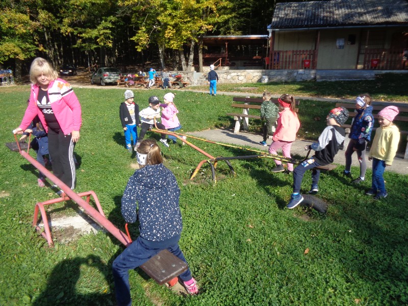 V utorok 5.10.2021 sme využili teplé a slnečné počasie na turistickú vychádzku na Dubník. Cestou sme pozorovali okolie potoka, lesné cestičky či rybárov pri love pstruhov. Na pláži sme sa zahrali na ihrisku a posilnili na spiatočnú cestu. Všetci sme zvládli cestu rôznym terénom.