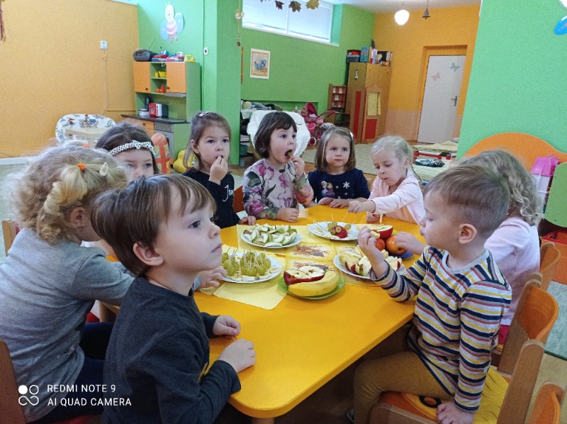 Mesiac október bol v našej triede Chrobáčikov spestrený rôznymi jesennými aktivitami. Počas babieho leta sme sa dosýta vyšantili pod stromami s farebným lístím. V spolupráci s rodičmi sa uskutočnila súťaž o najkrajšieho „Gaštanka“ vytvoreného z prírodnín. Ďakujeme všetkým rodinám, ktoré sa aktívne zapojili za spoluprácu, kreativitu a krásne výtvory. S deťmi sme absolvovali aj exkurziu na Staroturiansku tržnicu, kde sme mali možnosť vidieť pestrosť druhov ovocia a zeleniny. V rámci Svetového týždňa zdravej výživy a Dňa jablka sme konzumovali rôzne druhy ovocia a pripomenuli sme si potrebu zdravého stravovania sa.