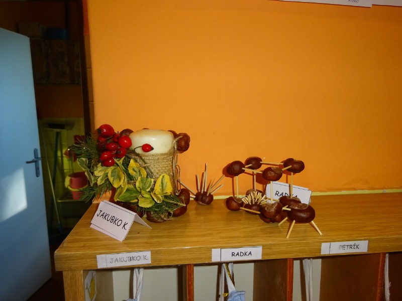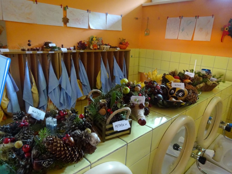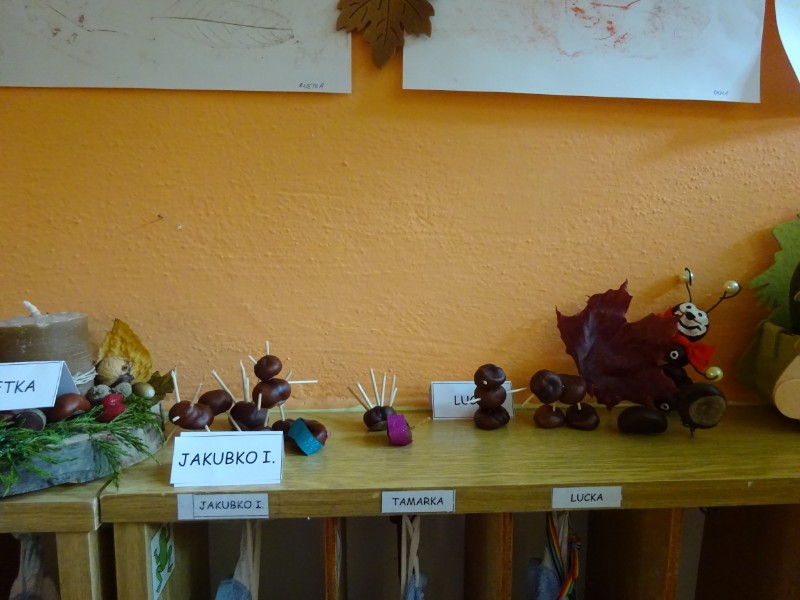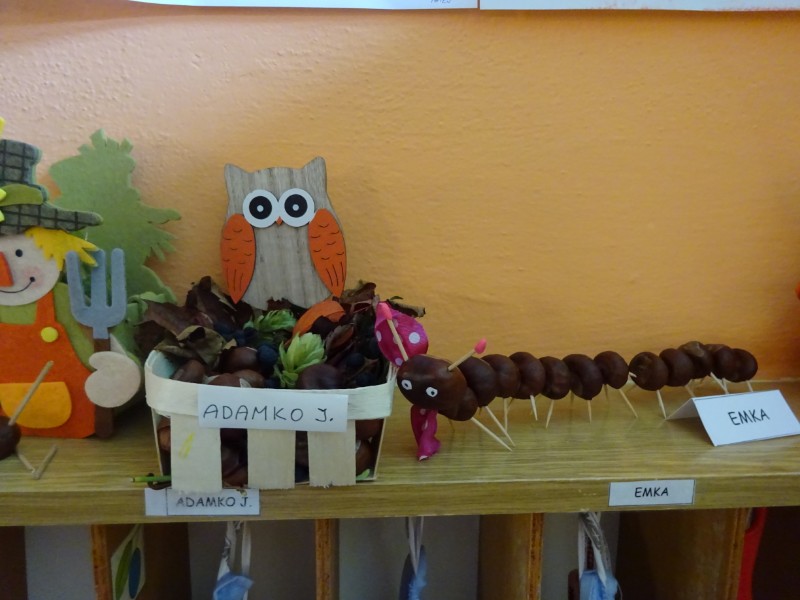 Každý rok sa na jeseň tešíme z toho množstva všakovakých plodov. S pomocou mamičiek a ockov sme si doma vyrobili zaujímavé výtvory. Doniesli sme si ich do škôlky a vyzdobili nimi spoločné priestory umyvárne. radosť nám robili niekoľko týždňov.