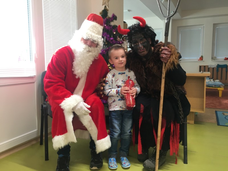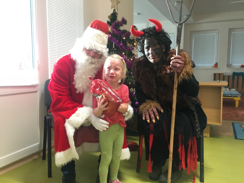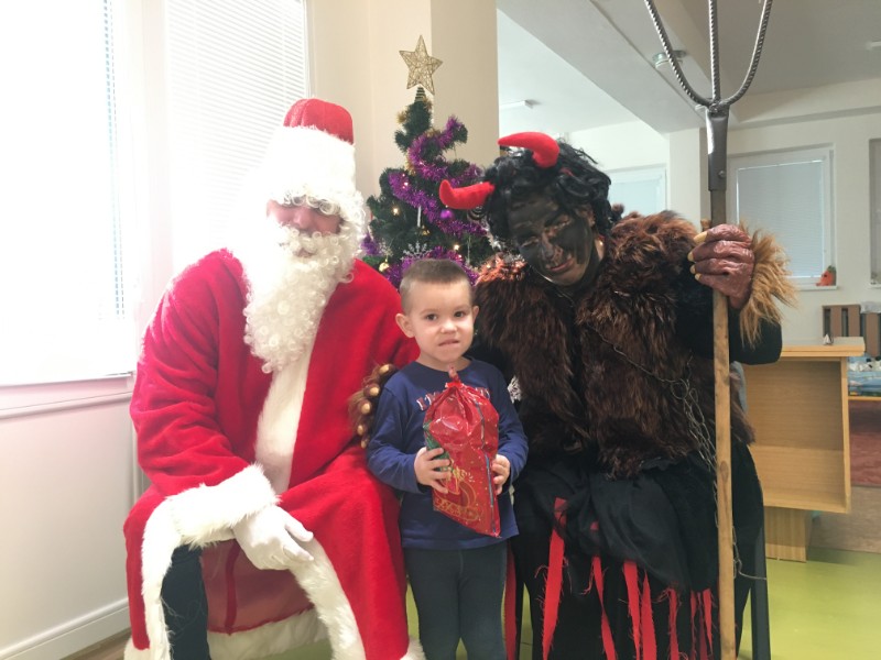 Vitaj v našej škôlke milý Mikuláš - touto krásnou piesňou vítali maličké detičky v MŠ Mikuláša, ktorý si priviedol na pomoc i čerta.