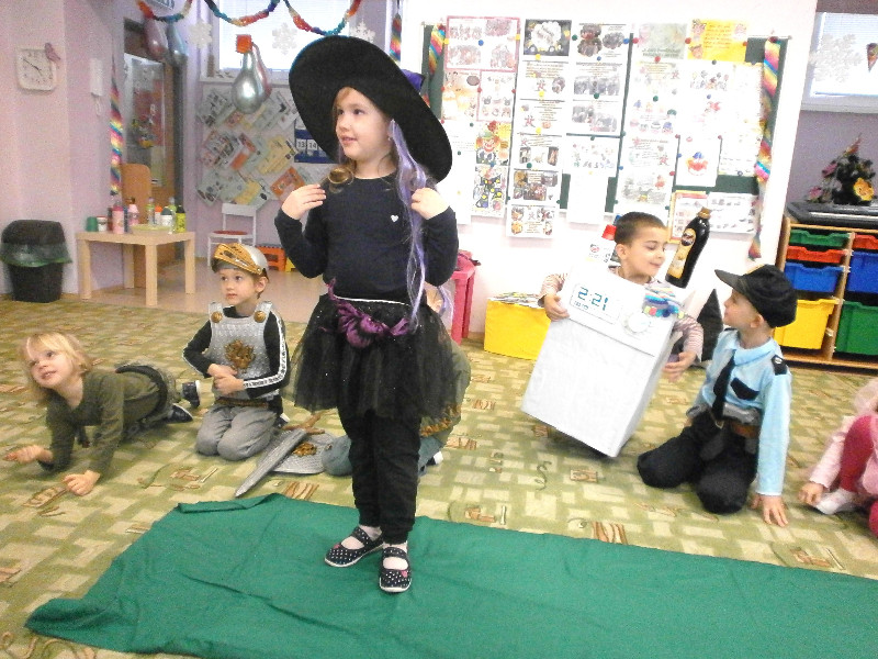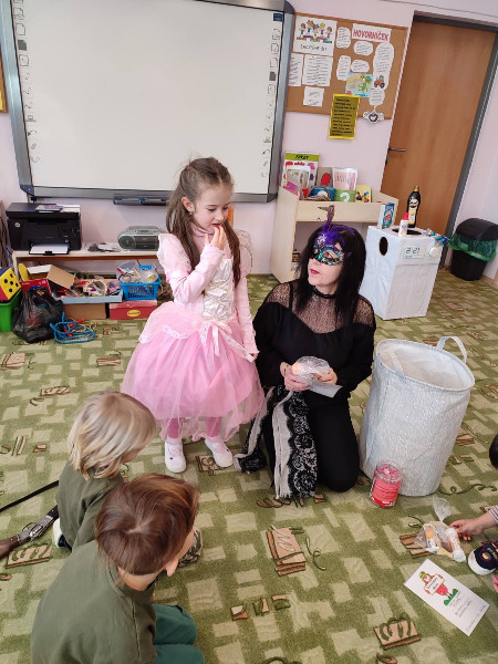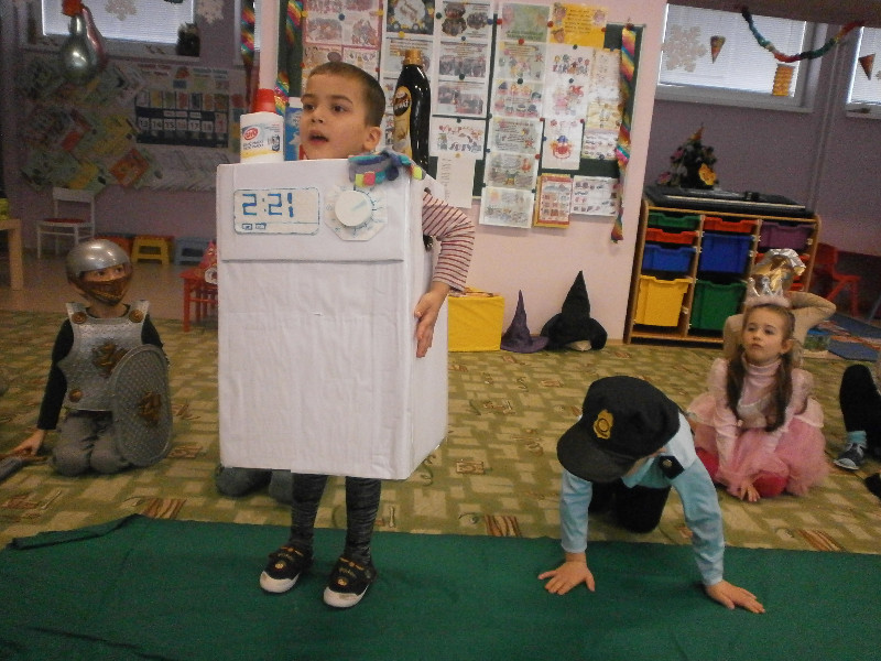 Naši predškoláci prežili karnevalový deň s radosťou, naplnený hrami, predstavením svojich masiek, súťažením, fašiangovou hostinkou a čarovaním v tajomnom vreci, z ktorého si každý za básničku, či pesničku, vyčaroval odmenu s farebným diplomom.