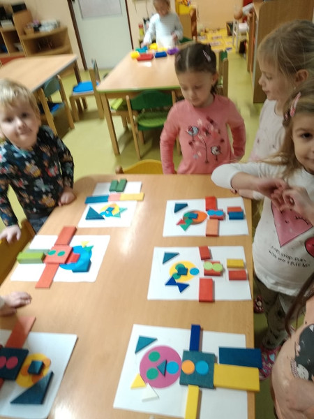 Fotogaléria - skladáme postavy z geometrických tvarov 6.trieda