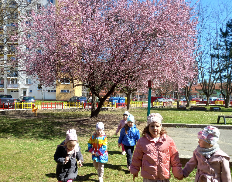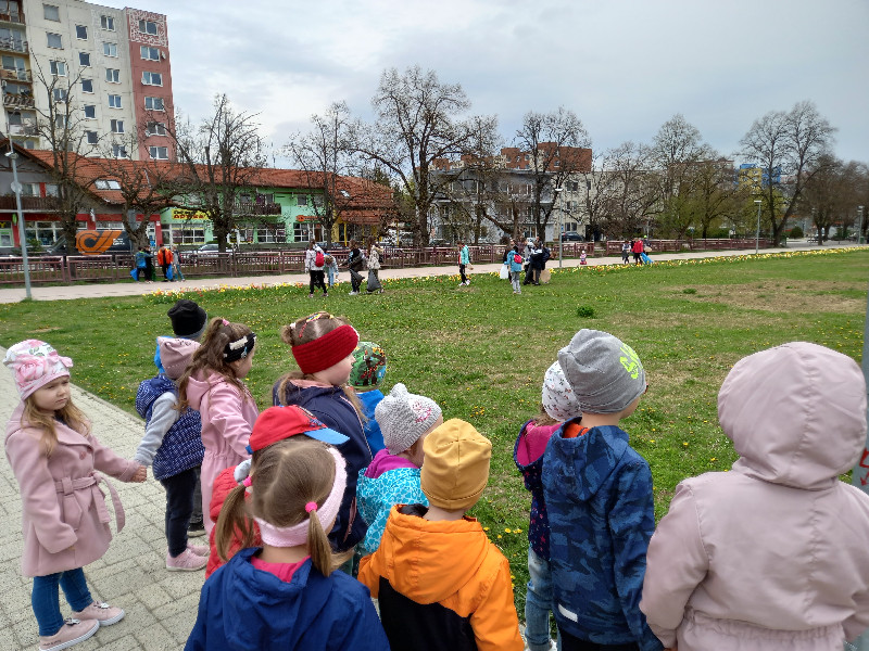 Už tradične si 22. apríla pripomíname Deň Zeme. S deťmi sme si vysadili semienka a kvety, prostredníctvom piesne „Veverička Triedička“ sme si ukázali ako správne separujeme odpad. Na vychádzke mestom sme stretli starších kamarátov, ktorí zberali v parkoch odpadky. Na turistickej vychádzke motivovanej hrou na Jarných pátračov sme pozorovali prírodné prostredie a život v prírode.