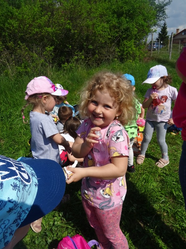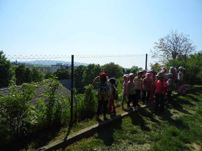 Dňa 12.5.2022 sme sa s deťmi vybrali na turistickú vychádzku s environmentálnym zameraním. Pozorovali sme okolie, naskytol sa nám krásny výhľad na naše mesto a pomocou lúp sme obdivovali hmyz v tráve. Na kopci sme zagratulovali našej malej oslávenkyni Peťke k narodeninám a pojedli sme všetko, čo nám maminky nabalili do batohov. Radosť nám urobili aj malé kozičky, ktoré sa na nás prišli pozrieť. Počasie nám prialo, a tak sme po ceste späť mohli v diaľke vidieť aj Čachtický hrad. Do škôlky sme sa vrátili príjemne unavení, ale obohatení o nové zážitky.